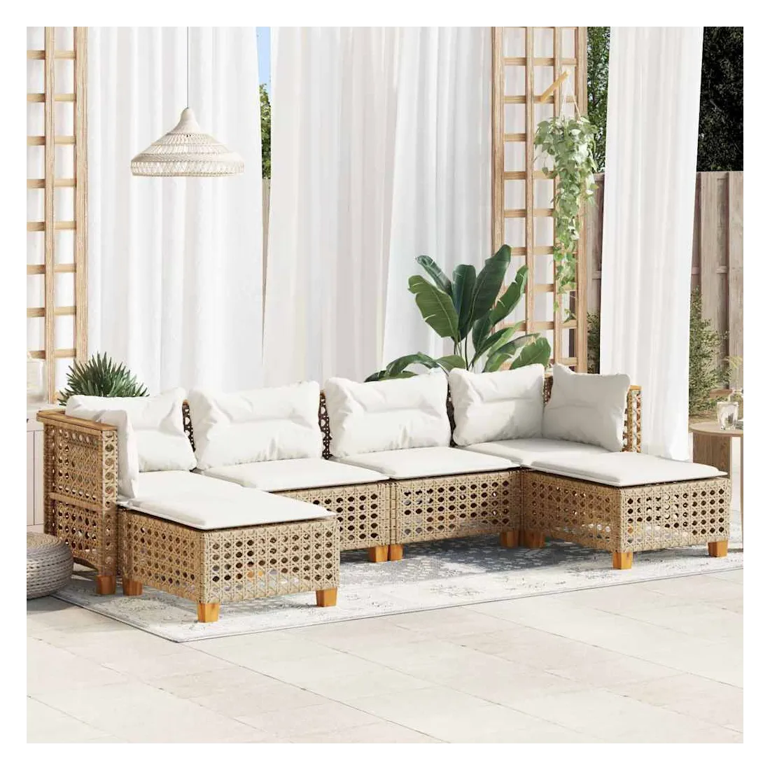 Cet ensemble de canapés de jardin est le complément parfait de votre arrière-cour, terrasse ou patio, offrant un espace confortable et accueillant pour discuter avec la famille et les amis ou simplement se détendre et profiter de l'extérieur. Matériau durable : la résine tressée, également connue sous le nom de poly rotin, est un matériau synthétique solide et nécessitant peu d'entretien qui ressemble au rotin naturel. Elle est légère, facile à nettoyer et couramment utilisée pour les meubles d'extérieur en raison de sa durabilité et de ses propriétés de résistance aux intempéries.Expérience d'assise confortable : ce mobilier d'extérieur, doté de coussins épais, offre une expérience d'assise confortable.Housse amovible et lavable : ces coussins de siège sont dotés de housses amovibles pour un lavage et un entretien faciles.Conception modulaire : cet ensemble de meubles d'extérieur a une conception modulaire, ce qui le rend complètement flexible et facile à déplacer, afin que vous puissiez créer un agencement de meubles d'extérieur personnalisé. Bon à savoir :Pour que vos meubles d'extérieur restent beaux, nous vous recommandons de les protéger avec une housse imperméable.