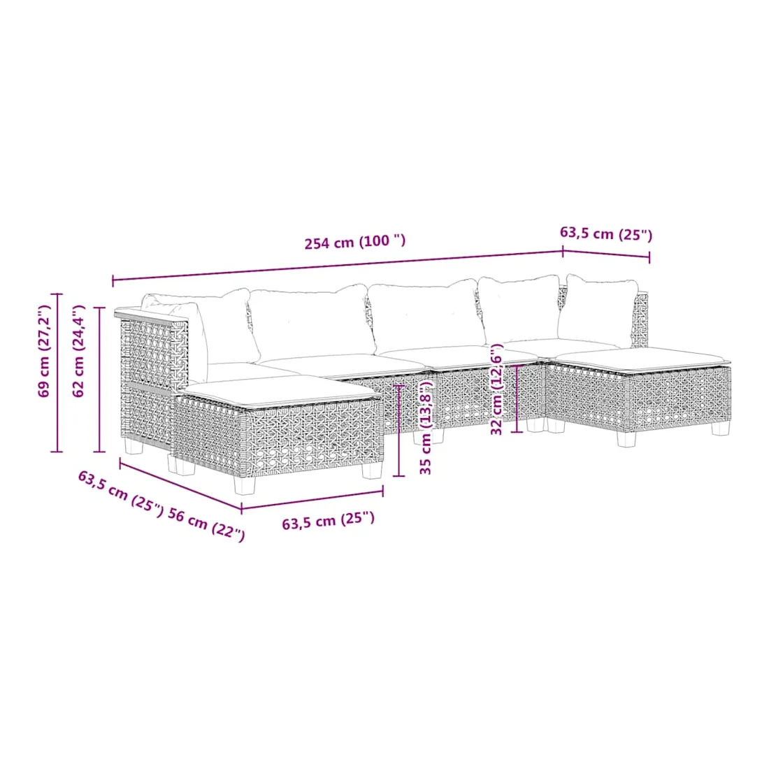 - Dimensions du coussin de dossier (angle) : 63,5 x 35 x 10 cm (L x l x é)