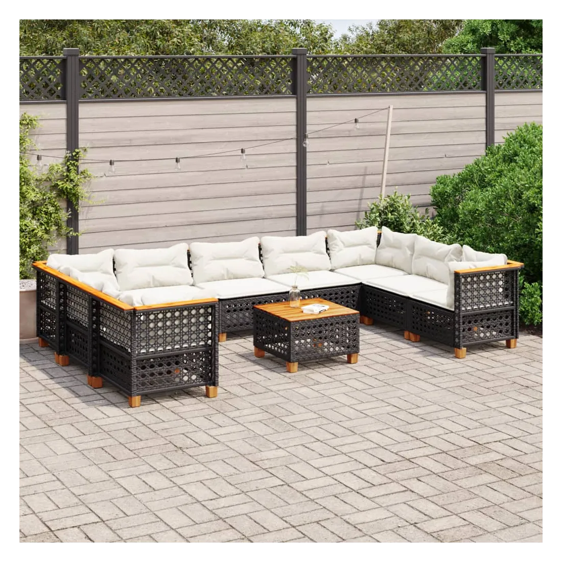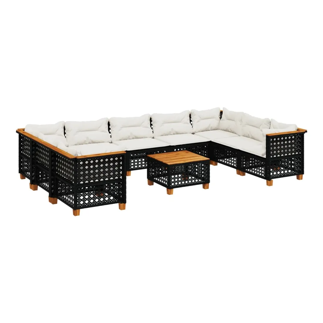 Salon de jardin 10 pcs avec coussins noir résine tressée