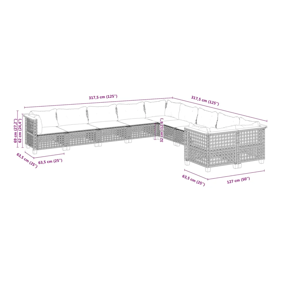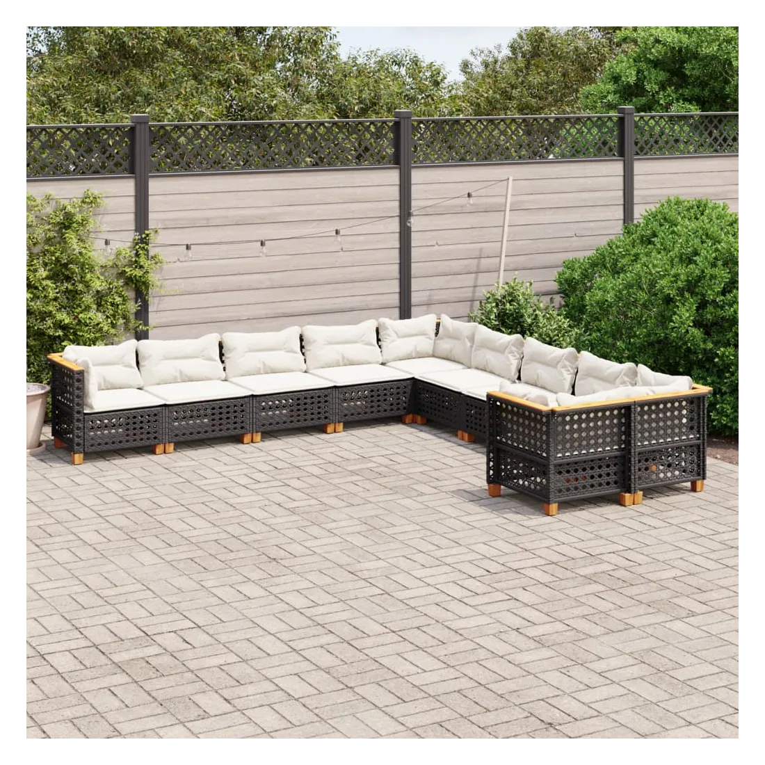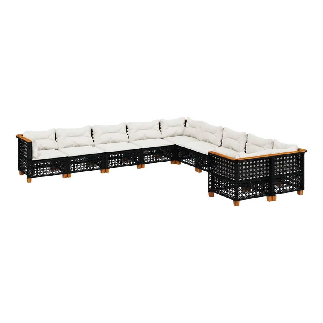 Salon de jardin 10 pcs avec coussins noir résine tressée