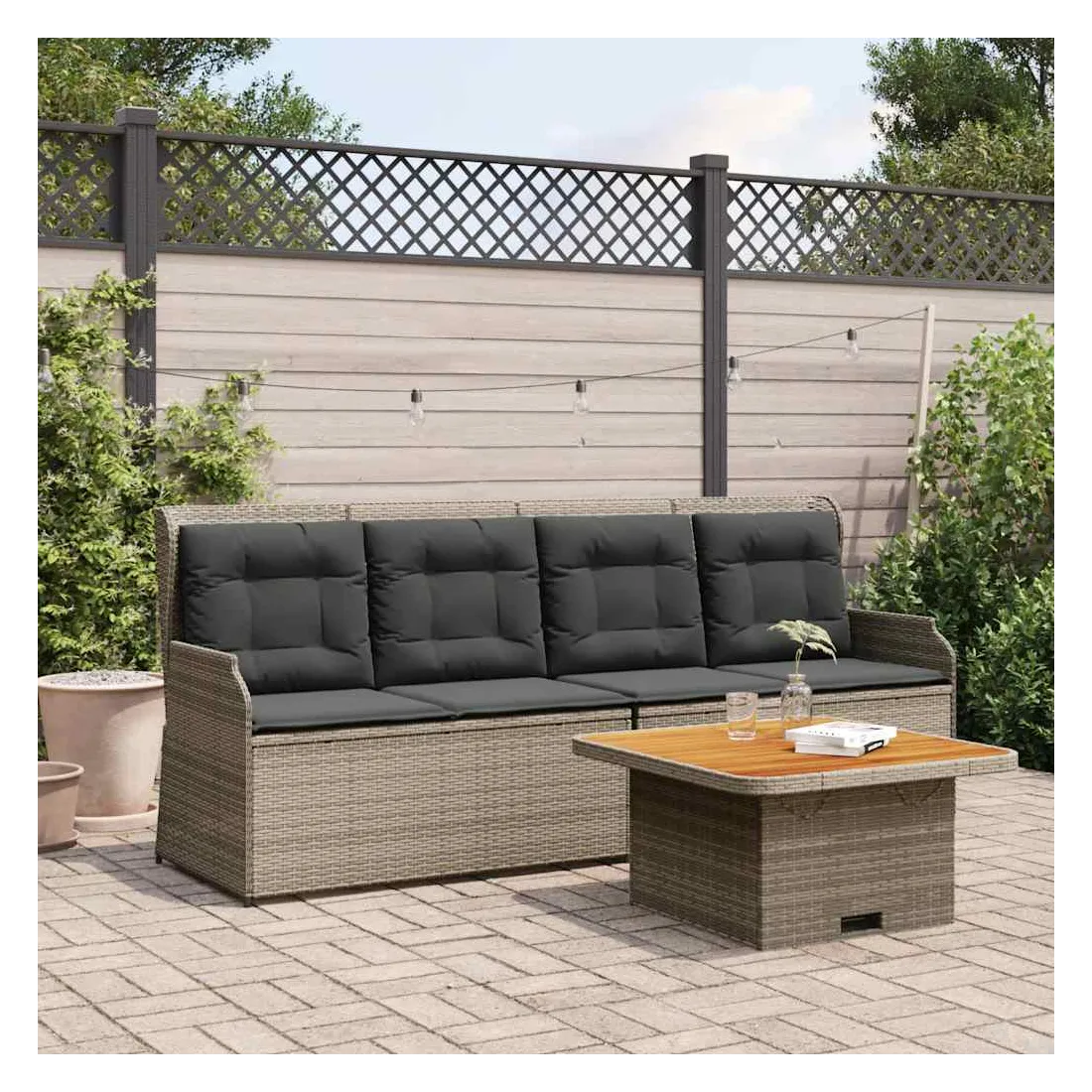 Cet ensemble de salon de jardin est le complément parfait de votre arrière-cour, terrasse ou patio, offrant un espace confortable et accueillant pour discuter avec la famille et les amis ou simplement se détendre et profiter de l'extérieur. Matériau durable : la résine tressée, également connue sous le nom de poly rotin, est un matériau synthétique solide et nécessitant peu d'entretien qui ressemble au rotin naturel. Elle est légère, facile à nettoyer et couramment utilisée pour les meubles d'extérieur en raison de sa durabilité et de ses propriétés de résistance aux intempéries.Dossier réglable : vous pouvez régler le dossier dans n'importe quelle position en tirant sur la poignée et le remettre rapidement dans sa position initiale.Housse amovible et lavable : ces coussins de siège sont dotés de housses amovibles pour un lavage et un entretien faciles.Expérience d'assise confortable : ce mobilier d'extérieur, doté de coussins épais, offre une expérience d'assise confortable.Dessus stable et facile à nettoyer : cette table de jardin a un dessus en bois d'acacia robuste, durable et facile à nettoyer avec un chiffon humide.Cadre robuste et stable : le cadre en acier enduit de poudre est solide, stable, durable et résistant à la corrosion et aux intempéries, ce qui garantit des performances durables. Bon à savoir :Pour que vos meubles d'extérieur restent beaux, nous vous recommandons de les protéger avec une housse imperméable.