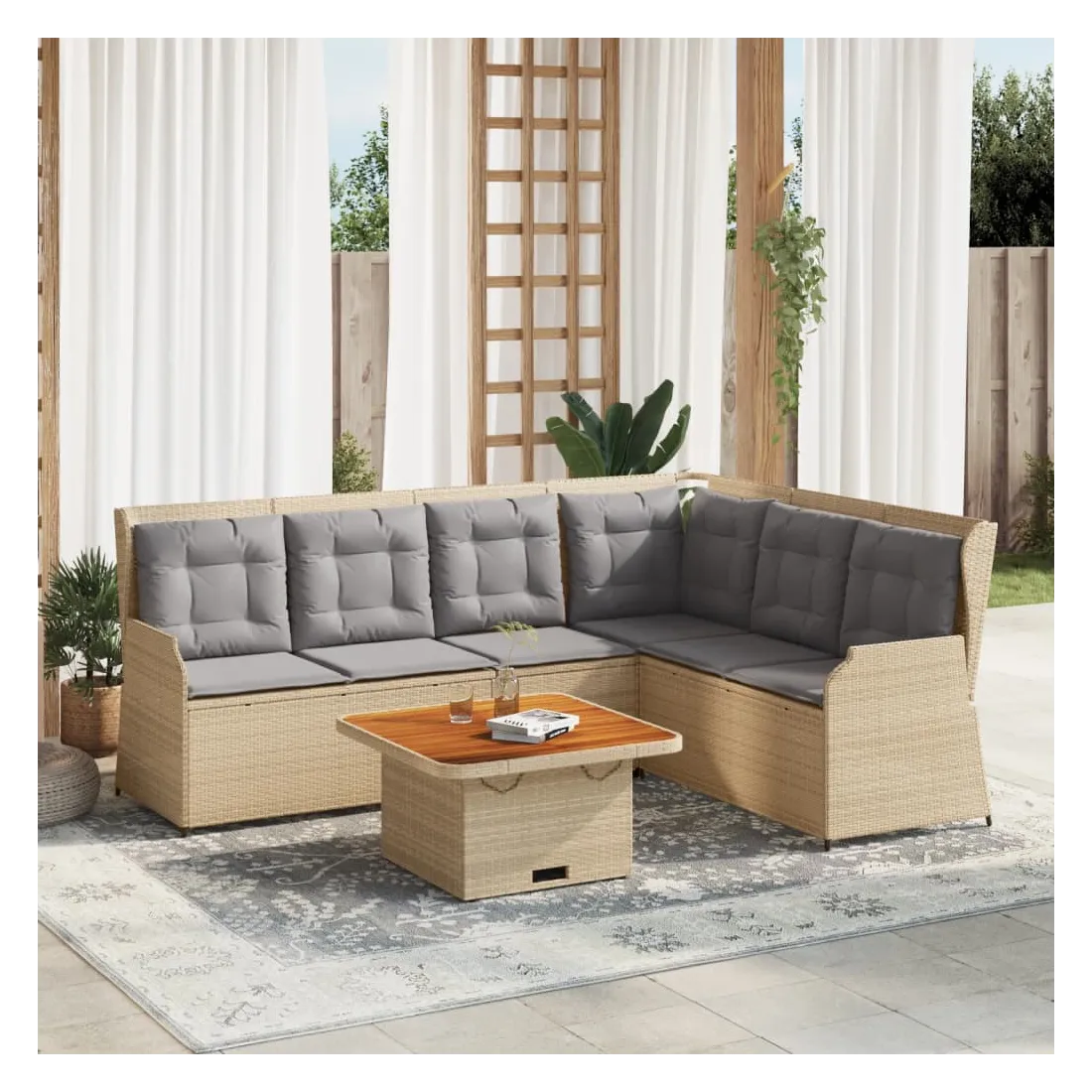 Cet ensemble de salon de jardin est le complément parfait de votre arrière-cour, terrasse ou patio, offrant un espace confortable et accueillant pour discuter avec la famille et les amis ou simplement se détendre et profiter de l'extérieur. Matériau durable : la résine tressée, également connue sous le nom de poly rotin, est un matériau synthétique solide et nécessitant peu d'entretien qui ressemble au rotin naturel. Elle est légère, facile à nettoyer et couramment utilisée pour les meubles d'extérieur en raison de sa durabilité et de ses propriétés de résistance aux intempéries.Dossier réglable : vous pouvez régler le dossier dans n'importe quelle position en tirant sur la poignée et le remettre rapidement dans sa position initiale.Housse amovible et lavable : ces coussins de siège sont dotés de housses amovibles pour un lavage et un entretien faciles.Expérience d'assise confortable : ce mobilier d'extérieur, doté de coussins épais, offre une expérience d'assise confortable.Dessus stable et facile à nettoyer : cette table de jardin a un dessus en bois d'acacia robuste, durable et facile à nettoyer avec un chiffon humide.Cadre robuste et stable : le cadre en acier enduit de poudre est solide, stable, durable et résistant à la corrosion et aux intempéries, ce qui garantit des performances durables. Bon à savoir :Pour que vos meubles d'extérieur restent beaux, nous vous recommandons de les protéger avec une housse imperméable.