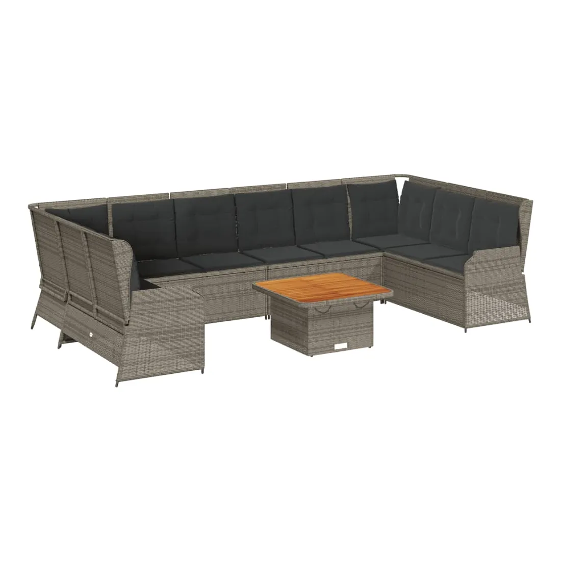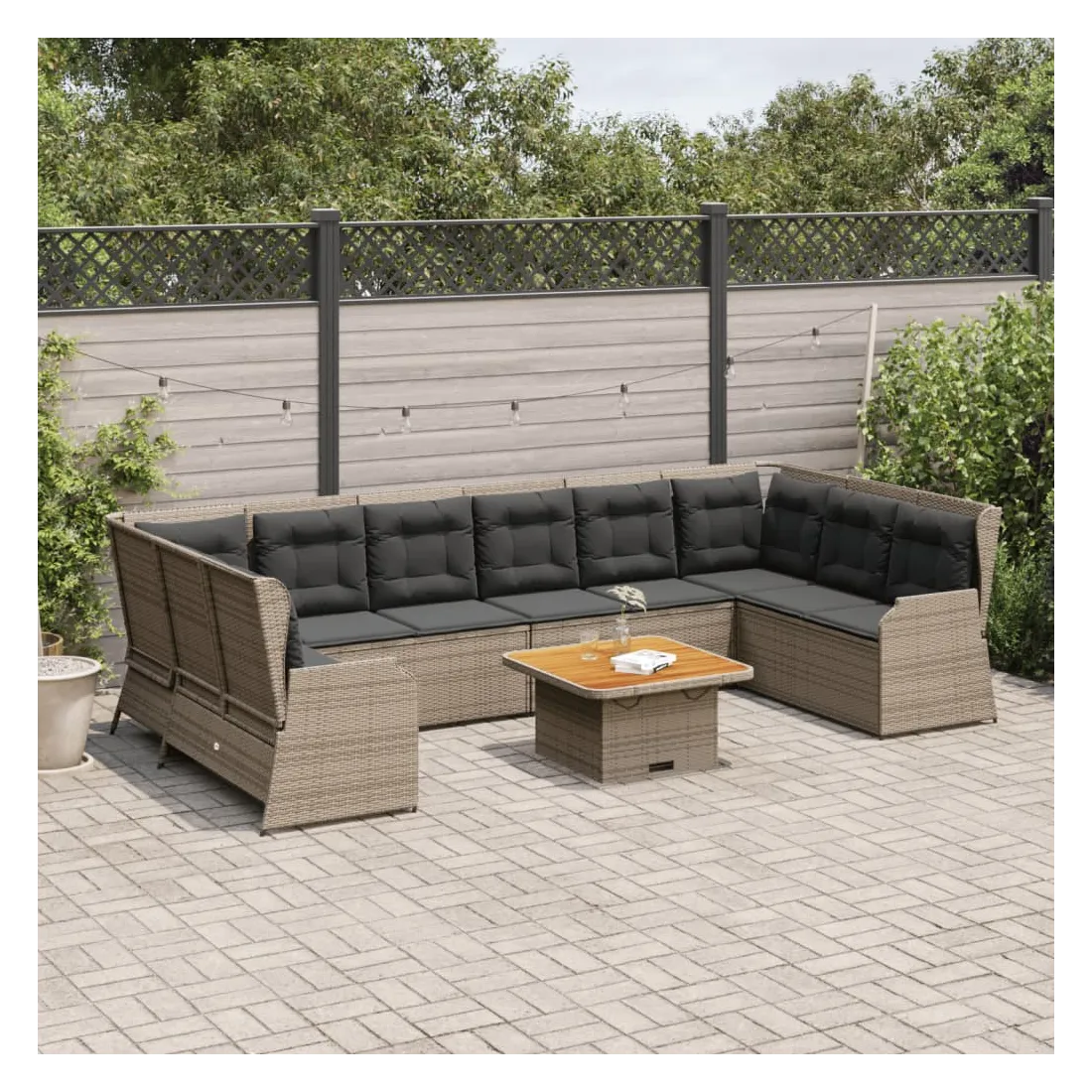Cet ensemble de salon de jardin est le complément parfait de votre arrière-cour, terrasse ou patio, offrant un espace confortable et accueillant pour discuter avec la famille et les amis ou simplement se détendre et profiter de l'extérieur. Matériau durable : la résine tressée, également connue sous le nom de poly rotin, est un matériau synthétique solide et nécessitant peu d'entretien qui ressemble au rotin naturel. Elle est légère, facile à nettoyer et couramment utilisée pour les meubles d'extérieur en raison de sa durabilité et de ses propriétés de résistance aux intempéries.Dossier réglable : vous pouvez régler le dossier dans n'importe quelle position en tirant sur la poignée et le remettre rapidement dans sa position initiale.Housse amovible et lavable : ces coussins de siège sont dotés de housses amovibles pour un lavage et un entretien faciles.Expérience d'assise confortable : ce mobilier d'extérieur, doté de coussins épais, offre une expérience d'assise confortable.Dessus stable et facile à nettoyer : cette table de jardin a un dessus en bois d'acacia robuste, durable et facile à nettoyer avec un chiffon humide.Cadre robuste et stable : le cadre en acier enduit de poudre est solide, stable, durable et résistant à la corrosion et aux intempéries, ce qui garantit des performances durables. Bon à savoir :Pour que vos meubles d'extérieur restent beaux, nous vous recommandons de les protéger avec une housse imperméable.