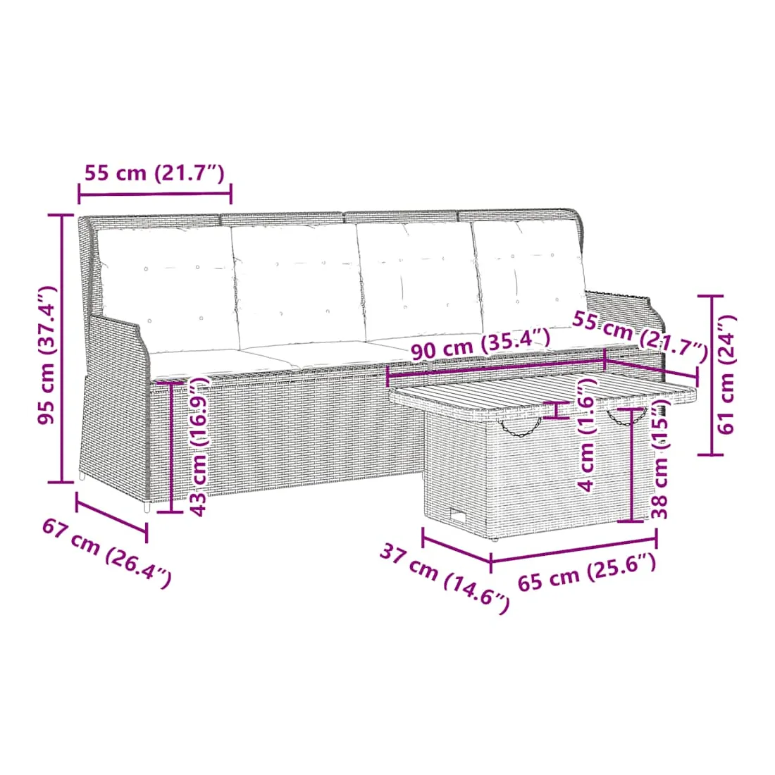 - Dimensions : 90 x 55 x 40/71 cm (L x l x H)