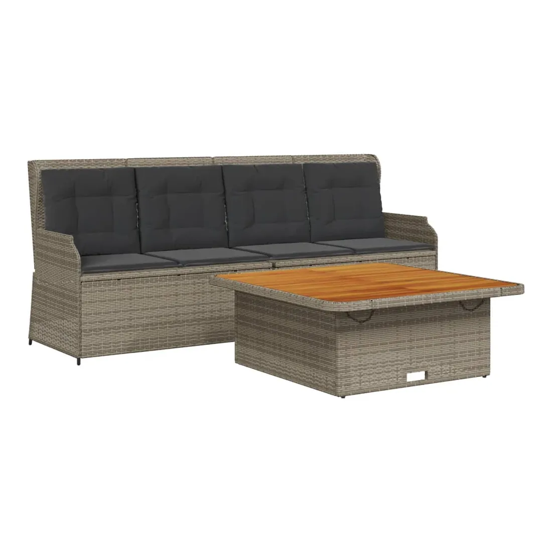 Cet ensemble de salon de jardin est le complément parfait de votre arrière-cour, terrasse ou patio, offrant un espace confortable et accueillant pour discuter avec la famille et les amis ou simplement se détendre et profiter de l'extérieur. Matériau durable : la résine tressée, également connue sous le nom de poly rotin, est un matériau synthétique solide et nécessitant peu d'entretien qui ressemble au rotin naturel. Elle est légère, facile à nettoyer et couramment utilisée pour les meubles d'extérieur en raison de sa durabilité et de ses propriétés de résistance aux intempéries.Dossier réglable : vous pouvez régler le dossier dans n'importe quelle position en tirant sur la poignée et le remettre rapidement dans sa position initiale.Housse amovible et lavable : ces coussins de siège sont dotés de housses amovibles pour un lavage et un entretien faciles.Expérience d'assise confortable : ce mobilier d'extérieur, doté de coussins épais, offre une expérience d'assise confortable.Dessus stable et facile à nettoyer : cette table de jardin a un dessus en bois d'acacia robuste, durable et facile à nettoyer avec un chiffon humide.Cadre robuste et stable : le cadre en acier enduit de poudre est solide, stable, durable et résistant à la corrosion et aux intempéries, ce qui garantit des performances durables. Bon à savoir :Pour que vos meubles d'extérieur restent beaux, nous vous recommandons de les protéger avec une housse imperméable.