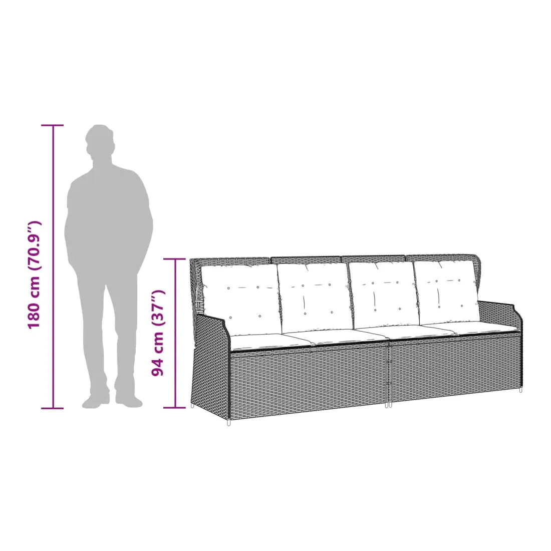 - Taille du siège : 108 x 52 cm (l x P)