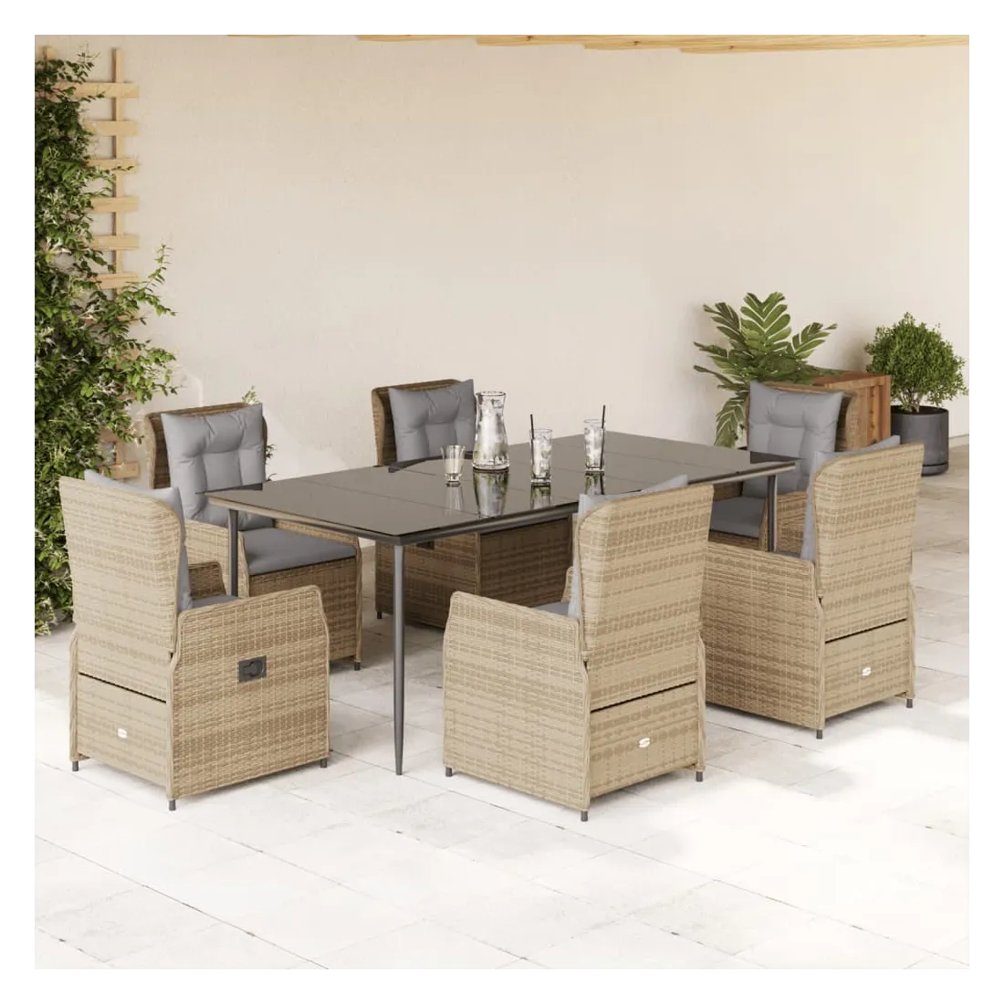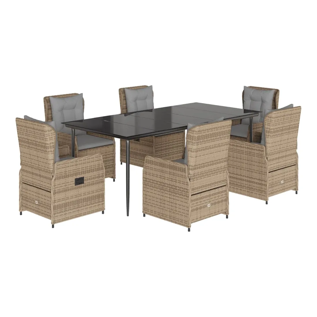 Cet ensemble de salle à manger de jardin est un excellent choix pour les repas en plein air ou pour vous détendre dans le jardin, dans l'arrière-cour ou sur la terrasse. Matériau durable : la résine tressée, également connue sous le nom de poly rotin, est un matériau synthétique solide et nécessitant peu d'entretien qui ressemble au rotin naturel. Il est léger, facile à nettoyer et couramment utilisé pour les meubles d'extérieur en raison de sa durabilité et de ses propriétés de résistance aux intempéries.Dossier réglable : ce siège de jardin est doté d'une poignée. Vous pouvez régler le dossier dans n'importe quelle position en tirant sur la poignée et le remettre rapidement dans sa position initiale.Expérience d'assise confortable : ce mobilier d'extérieur, doté de coussins épais, offre une expérience d'assise confortable.Housse amovible et lavable : le coussin de siège est doté d'une housse amovible pour un lavage et un entretien faciles.Dessus en verre : le dessus de la table d'extérieur est fabriqué en verre trempé solide et durable, ce qui le rend facile à nettoyer avec un chiffon humide et ajoute une touche d'élégance à votre espace extérieur. Bon à savoir :Pour que vos meubles d'extérieur restent beaux, nous vous recommandons de les protéger avec une housse imperméable.