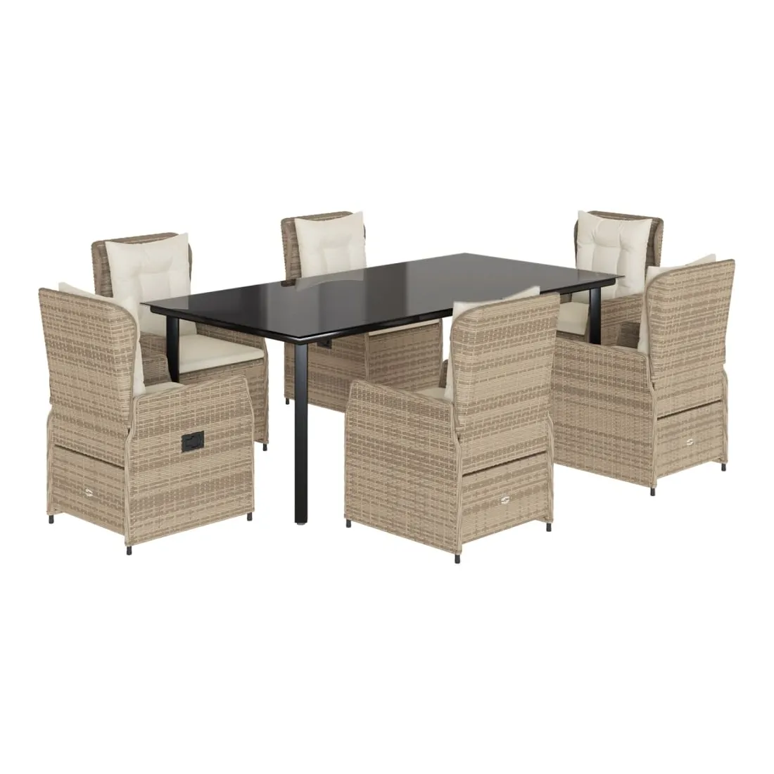 Ensemble à manger de jardin et coussins 7 pcs beige poly rotin