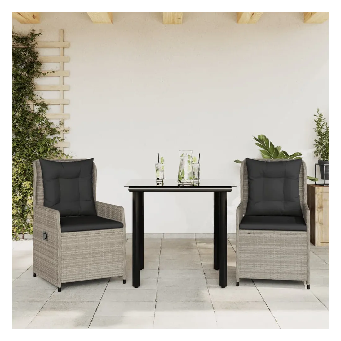 Cet ensemble de salle à manger de jardin est un excellent choix pour les repas en plein air ou pour vous détendre dans le jardin, dans l'arrière-cour ou sur la terrasse. Matériau durable : la résine tressée, également connue sous le nom de poly rotin, est un matériau synthétique solide et nécessitant peu d'entretien qui ressemble au rotin naturel. Il est léger, facile à nettoyer et couramment utilisé pour les meubles d'extérieur en raison de sa durabilité et de ses propriétés de résistance aux intempéries.Dossier réglable : ce siège de jardin est doté d'une poignée. Vous pouvez régler le dossier dans n'importe quelle position en tirant sur la poignée et le remettre rapidement dans sa position initiale.Expérience d'assise confortable : ce mobilier d'extérieur, doté de coussins épais, offre une expérience d'assise confortable.Housse amovible et lavable : le coussin de siège est doté d'une housse amovible pour un lavage et un entretien faciles.Dessus en verre : le dessus de la table d'extérieur est fabriqué en verre trempé solide et durable, ce qui le rend facile à nettoyer avec un chiffon humide et ajoute une touche d'élégance à votre espace extérieur. Bon à savoir :Pour que vos meubles d'extérieur restent beaux, nous vous recommandons de les protéger avec une housse imperméable.