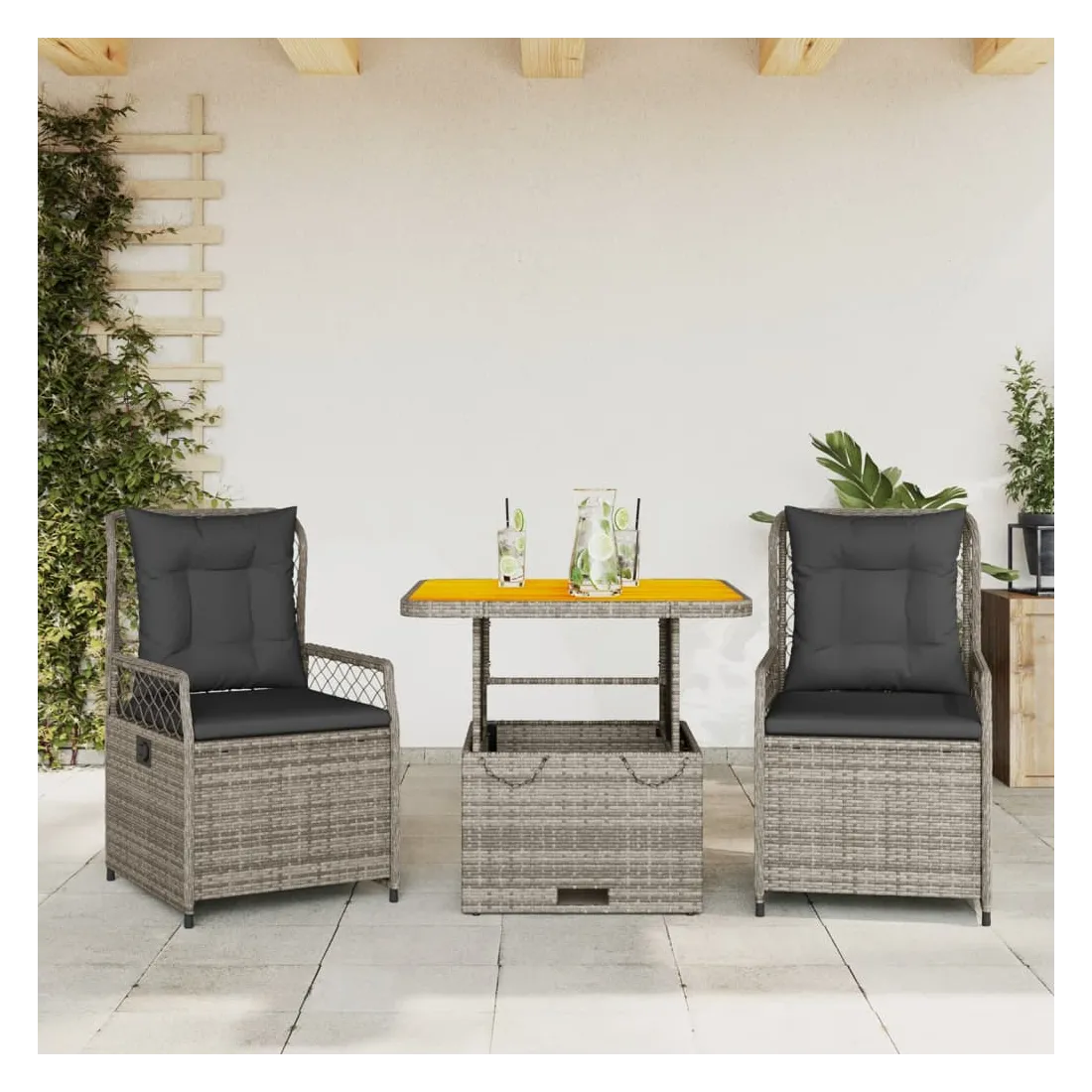 Cet ensemble de salle à manger de jardin est un excellent choix pour les repas en plein air ou pour vous détendre dans le jardin, dans l'arrière-cour ou sur la terrasse. Matériau durable : la résine tressée, également connue sous le nom de poly rotin, est un matériau synthétique solide et nécessitant peu d'entretien qui ressemble au rotin naturel. Il est léger, facile à nettoyer et couramment utilisé pour les meubles d'extérieur en raison de sa durabilité et de ses propriétés de résistance aux intempéries.Dossier réglable : ce siège de jardin est doté d'une poignée. Vous pouvez régler le dossier dans n'importe quelle position en tirant sur la poignée et le remettre rapidement dans sa position initiale.Housse amovible et lavable : le coussin de siège est doté d'une housse amovible pour un lavage et un entretien faciles.Dessus de table réglable : le dessus de table peut être soulevé pour rendre la table plus haute, ce qui transforme la table d'extérieur d'une table basse à une table de salle à manger. Elle est parfaite pour recevoir des invités ou prendre des repas à l'extérieur.Dessus stable et facile à nettoyer : cette table de jardin a un dessus en bois d'acacia robuste, durable et facile à nettoyer avec un chiffon humide. Bon à savoir :Pour que vos meubles d'extérieur restent beaux, nous vous recommandons de les protéger avec une housse imperméable.