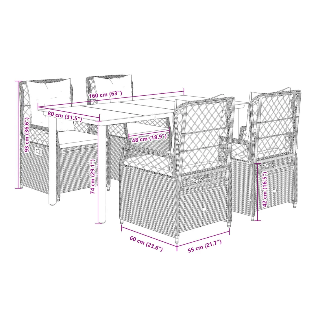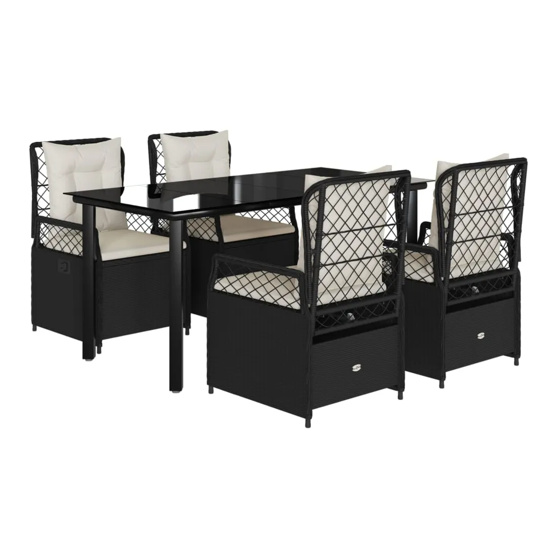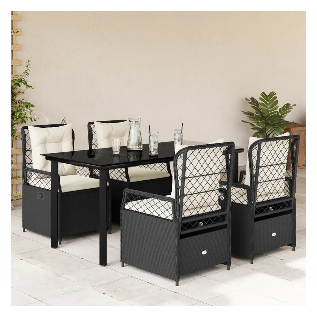 Cet ensemble de salle à manger de jardin est un excellent choix pour les repas en plein air ou pour vous détendre dans le jardin, dans l'arrière-cour ou sur la terrasse. Matériau durable : la résine tressée, également connue sous le nom de poly rotin, est un matériau synthétique solide et nécessitant peu d'entretien qui ressemble au rotin naturel. Il est léger, facile à nettoyer et couramment utilisé pour les meubles d'extérieur en raison de sa durabilité et de ses propriétés de résistance aux intempéries.Dossier réglable : ce siège de jardin est doté d'une poignée. Vous pouvez régler le dossier dans n'importe quelle position en tirant sur la poignée et le remettre rapidement dans sa position initiale.Expérience d'assise confortable : ce mobilier d'extérieur, doté de coussins épais, offre une expérience d'assise confortable.Housse amovible et lavable : le coussin de siège est doté d'une housse amovible pour un lavage et un entretien faciles.Dessus en verre : le dessus de la table d'extérieur est fabriqué en verre trempé solide et durable, ce qui le rend facile à nettoyer avec un chiffon humide et ajoute une touche d'élégance à votre espace extérieur. Bon à savoir :Pour que vos meubles d'extérieur restent beaux, nous vous recommandons de les protéger avec une housse imperméable.