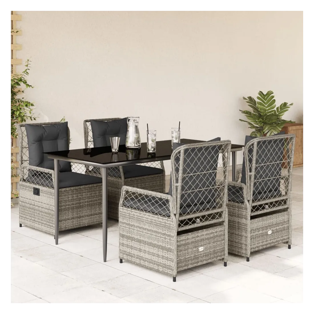 Cet ensemble de salle à manger de jardin est un excellent choix pour les repas en plein air ou pour vous détendre dans le jardin, dans l'arrière-cour ou sur la terrasse. Matériau durable : la résine tressée, également connue sous le nom de poly rotin, est un matériau synthétique solide et nécessitant peu d'entretien qui ressemble au rotin naturel. Il est léger, facile à nettoyer et couramment utilisé pour les meubles d'extérieur en raison de sa durabilité et de ses propriétés de résistance aux intempéries.Dossier réglable : ce siège de jardin est doté d'une poignée. Vous pouvez régler le dossier dans n'importe quelle position en tirant sur la poignée et le remettre rapidement dans sa position initiale.Expérience d'assise confortable : ce mobilier d'extérieur, doté de coussins épais, offre une expérience d'assise confortable.Housse amovible et lavable : le coussin de siège est doté d'une housse amovible pour un lavage et un entretien faciles.Dessus en verre : le dessus de la table d'extérieur est fabriqué en verre trempé solide et durable, ce qui le rend facile à nettoyer avec un chiffon humide et ajoute une touche d'élégance à votre espace extérieur. Bon à savoir :Pour que vos meubles d'extérieur restent beaux, nous vous recommandons de les protéger avec une housse imperméable.