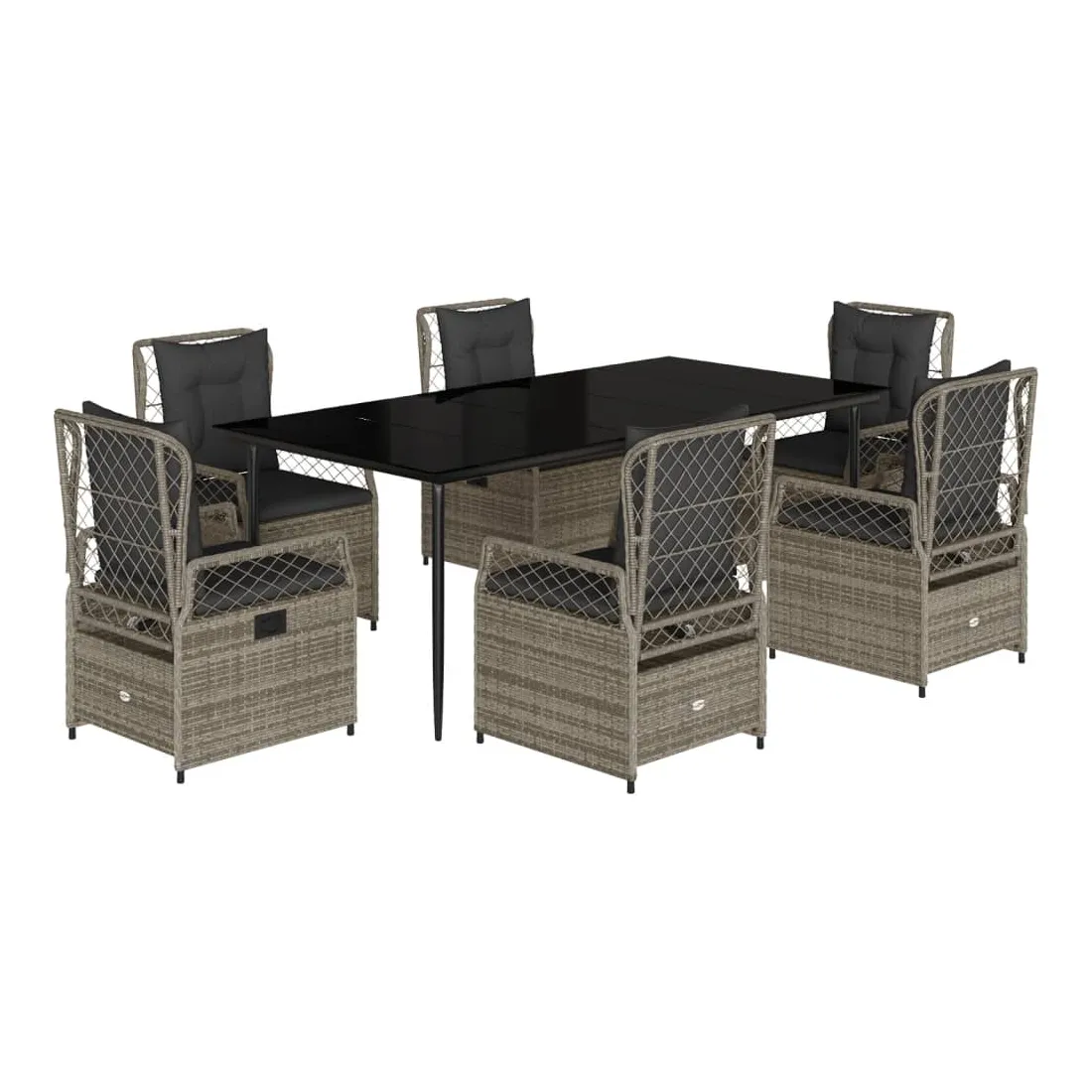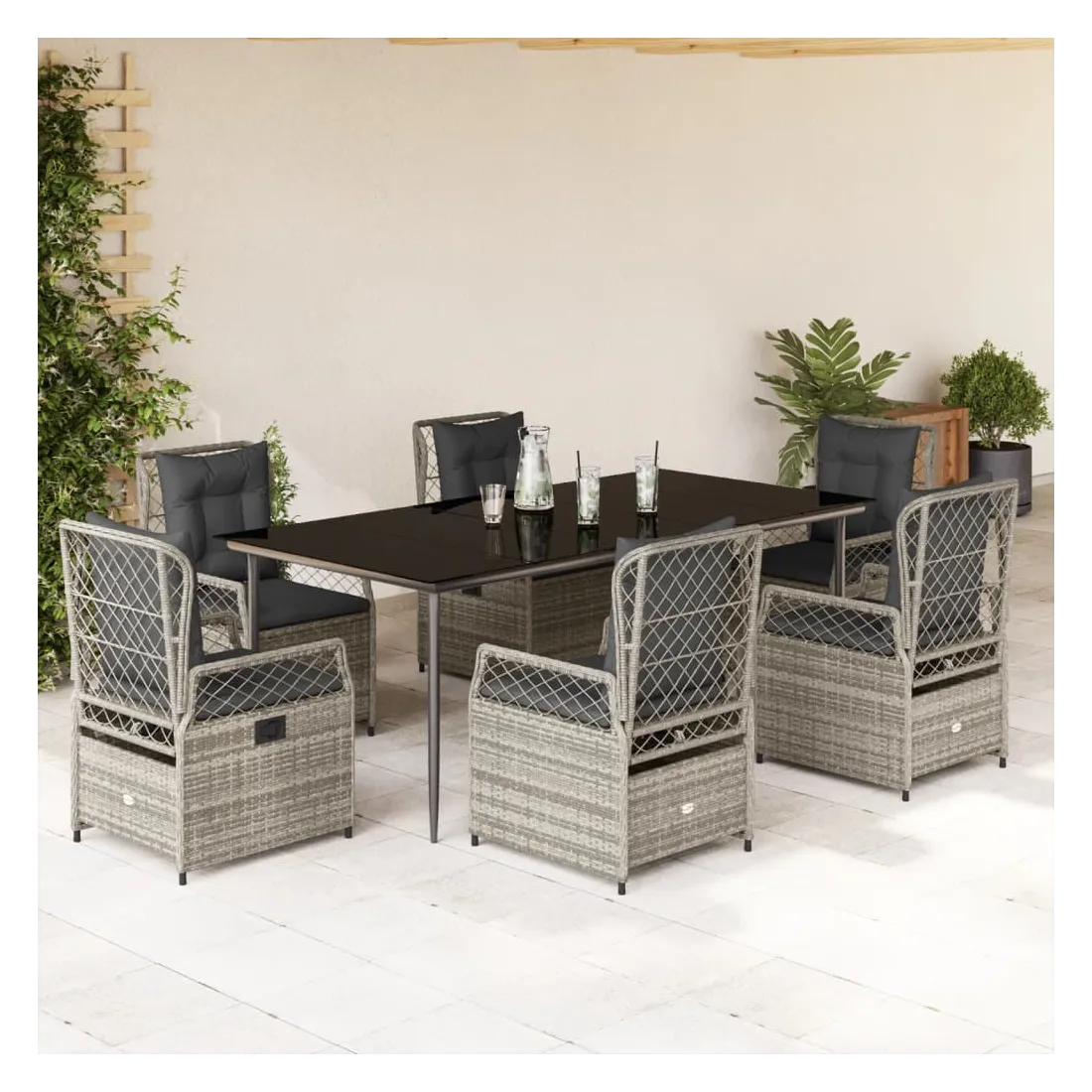 Cet ensemble de salle à manger de jardin est un excellent choix pour les repas en plein air ou pour vous détendre dans le jardin, dans l'arrière-cour ou sur la terrasse. Matériau durable : la résine tressée, également connue sous le nom de poly rotin, est un matériau synthétique solide et nécessitant peu d'entretien qui ressemble au rotin naturel. Il est léger, facile à nettoyer et couramment utilisé pour les meubles d'extérieur en raison de sa durabilité et de ses propriétés de résistance aux intempéries.Dossier réglable : ce siège de jardin est doté d'une poignée. Vous pouvez régler le dossier dans n'importe quelle position en tirant sur la poignée et le remettre rapidement dans sa position initiale.Expérience d'assise confortable : ce mobilier d'extérieur, doté de coussins épais, offre une expérience d'assise confortable.Housse amovible et lavable : le coussin de siège est doté d'une housse amovible pour un lavage et un entretien faciles.Dessus en verre : le dessus de la table d'extérieur est fabriqué en verre trempé solide et durable, ce qui le rend facile à nettoyer avec un chiffon humide et ajoute une touche d'élégance à votre espace extérieur. Bon à savoir :Pour que vos meubles d'extérieur restent beaux, nous vous recommandons de les protéger avec une housse imperméable.
