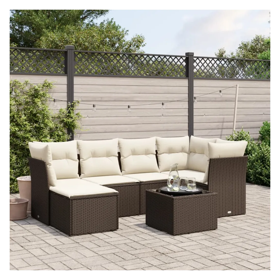 Cet ensemble de canapés de jardin est le complément parfait de votre arrière-cour, terrasse ou patio, offrant un espace confortable et accueillant pour discuter avec la famille et les amis ou simplement se détendre et profiter de l'extérieur. Matériau durable : la résine tressée, également connue sous le nom de poly rotin, est un matériau synthétique solide et nécessitant peu d'entretien qui ressemble au rotin naturel. Il est léger, facile à nettoyer et couramment utilisé pour les meubles d'extérieur en raison de sa durabilité et de ses propriétés de résistance aux intempéries.Dessus en verre : le dessus de la table d'extérieur est fabriqué en verre trempé solide et durable, ce qui le rend facile à nettoyer avec un chiffon humide et ajoute une touche d'élégance à votre espace extérieur.Housse amovible et lavable : ces coussins de siège sont dotés de housses amovibles pour un lavage et un entretien faciles.Cadre robuste et stable : le cadre en acier enduit de poudre assure la solidité et la stabilité du meuble de jardin pour une utilisation quotidienne à l'extérieur.Conception modulaire : cet ensemble de meubles d'extérieur a une conception modulaire, ce qui le rend complètement flexible et facile à déplacer, afin que vous puissiez créer un agencement de meubles d'extérieur personnalisé. Bon à savoir :Pour que vos meubles d'extérieur restent beaux, nous vous recommandons de les protéger avec une housse imperméable.