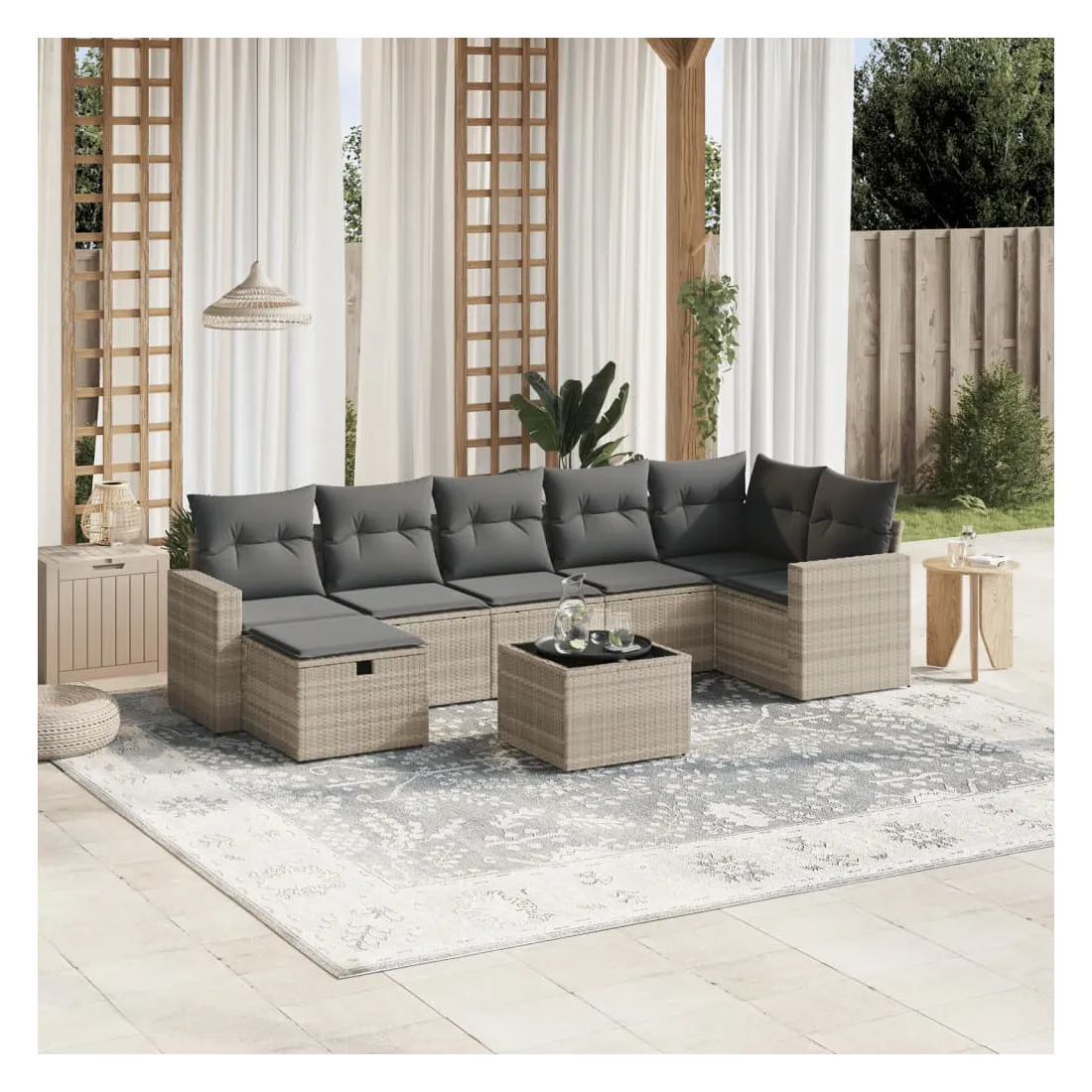 Cet ensemble de canapés de jardin est le complément parfait de votre arrière-cour, terrasse ou patio, offrant un espace confortable et accueillant pour discuter avec la famille et les amis ou simplement se détendre et profiter de l'extérieur. Matériau durable : la résine tressée, également connue sous le nom de poly rotin, est un matériau synthétique solide et nécessitant peu d'entretien qui ressemble au rotin naturel. Il est léger, facile à nettoyer et couramment utilisé pour les meubles d'extérieur en raison de sa durabilité et de ses propriétés de résistance aux intempéries.Dessus en verre : le dessus de la table d'extérieur est fabriqué en verre trempé solide et durable, ce qui le rend facile à nettoyer avec un chiffon humide et ajoute une touche d'élégance à votre espace extérieur.Housse amovible et lavable : ces coussins de siège sont dotés de housses amovibles pour un lavage et un entretien faciles.Cadre robuste et stable : le cadre en acier enduit de poudre assure la solidité et la stabilité du meuble de jardin pour une utilisation quotidienne à l'extérieur.Conception modulaire : cet ensemble de meubles d'extérieur a une conception modulaire, ce qui le rend complètement flexible et facile à déplacer, afin que vous puissiez créer un agencement de meubles d'extérieur personnalisé. Bon à savoir :Pour que vos meubles d'extérieur restent beaux, nous vous recommandons de les protéger avec une housse imperméable.