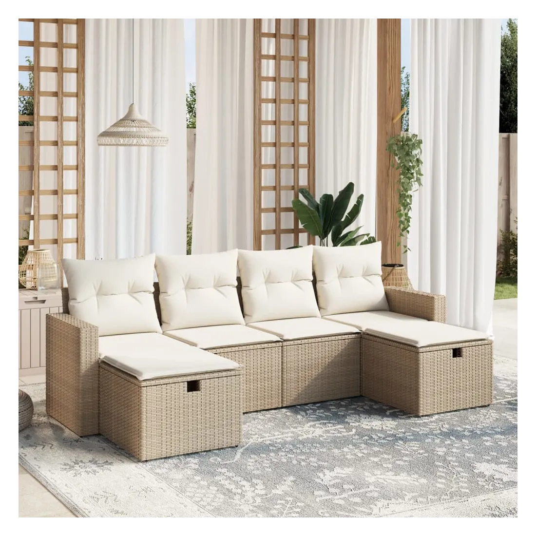 Cet ensemble de canapés de jardin est le complément parfait de votre arrière-cour, terrasse ou patio, offrant un espace confortable et accueillant pour discuter avec la famille et les amis ou simplement se détendre et profiter de l'extérieur. Matériau durable : la résine tressée, également connue sous le nom de poly rotin, est un matériau synthétique solide et nécessitant peu d'entretien qui ressemble au rotin naturel. Il est léger, facile à nettoyer et couramment utilisé pour les meubles d'extérieur en raison de sa durabilité et de ses propriétés de résistance aux intempéries.Expérience d'assise confortable : ce mobilier d'extérieur, doté de coussins épais, offre une expérience d'assise confortable.Housse amovible et lavable : ces coussins de siège sont dotés de housses amovibles pour un lavage et un entretien faciles.Cadre robuste et stable : le cadre en acier enduit de poudre assure la solidité et la stabilité du meuble de jardin pour une utilisation quotidienne à l'extérieur.Conception modulaire : cet ensemble de meubles d'extérieur a une conception modulaire, ce qui le rend complètement flexible et facile à déplacer, afin que vous puissiez créer un agencement de meubles d'extérieur personnalisé. Bon à savoir :Pour que vos meubles d'extérieur restent beaux, nous vous recommandons de les protéger avec une housse imperméable.