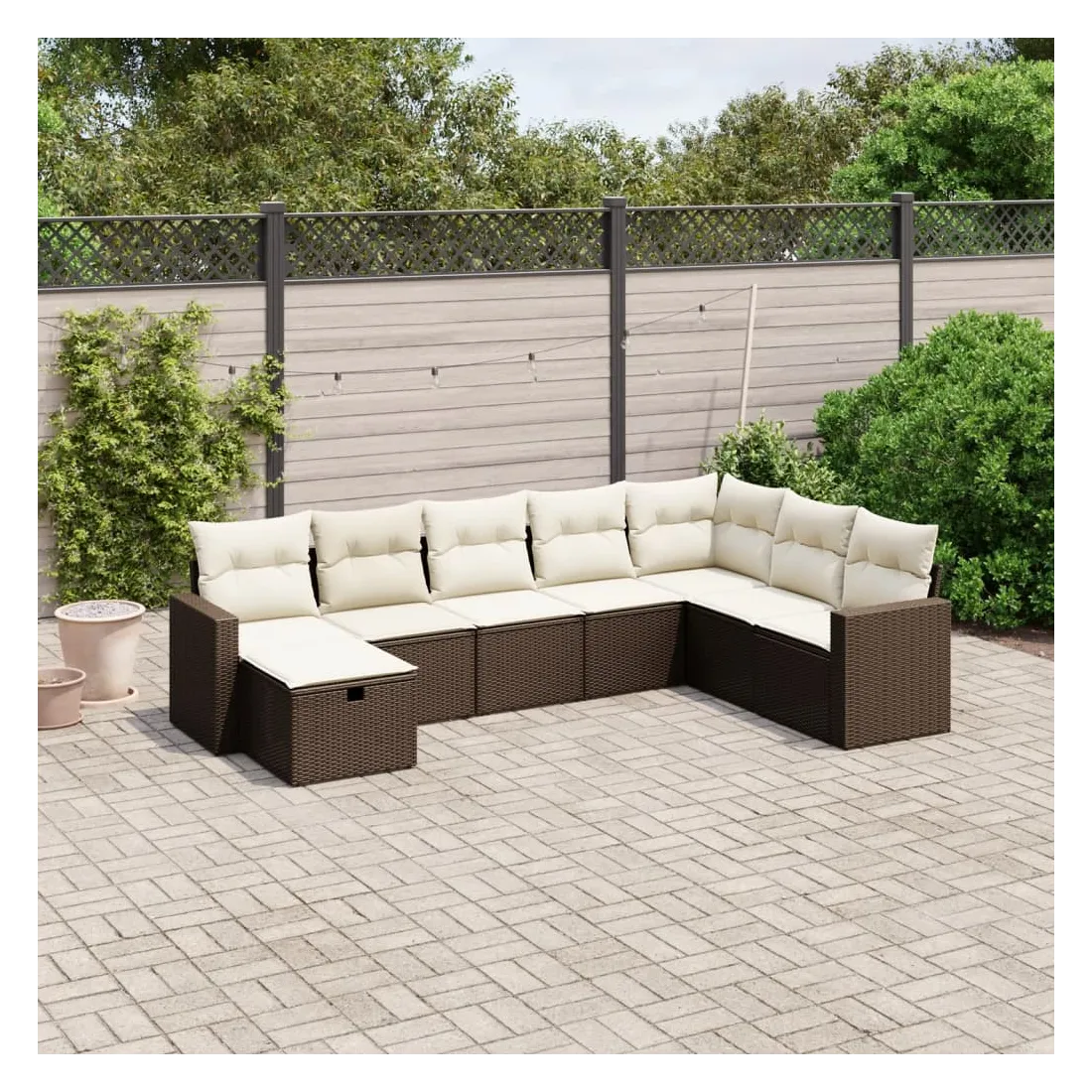 Cet ensemble de canapés de jardin est le complément parfait de votre arrière-cour, terrasse ou patio, offrant un espace confortable et accueillant pour discuter avec la famille et les amis ou simplement se détendre et profiter de l'extérieur. Matériau durable : la résine tressée, également connue sous le nom de poly rotin, est un matériau synthétique solide et nécessitant peu d'entretien qui ressemble au rotin naturel. Il est léger, facile à nettoyer et couramment utilisé pour les meubles d'extérieur en raison de sa durabilité et de ses propriétés de résistance aux intempéries.Expérience d'assise confortable : ce mobilier d'extérieur, doté de coussins épais, offre une expérience d'assise confortable.Housse amovible et lavable : ces coussins de siège sont dotés de housses amovibles pour un lavage et un entretien faciles.Cadre robuste et stable : le cadre en acier enduit de poudre assure la solidité et la stabilité du meuble de jardin pour une utilisation quotidienne à l'extérieur.Conception modulaire : cet ensemble de meubles d'extérieur a une conception modulaire, ce qui le rend complètement flexible et facile à déplacer, afin que vous puissiez créer un agencement de meubles d'extérieur personnalisé. Bon à savoir :Pour que vos meubles d'extérieur restent beaux, nous vous recommandons de les protéger avec une housse imperméable.