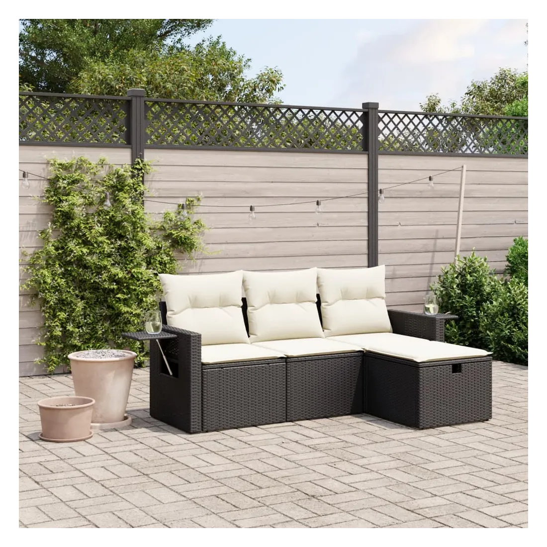 Cet ensemble de canapés de jardin est le complément parfait de votre arrière-cour, terrasse ou patio, offrant un espace confortable et accueillant pour discuter avec la famille et les amis ou simplement se détendre et profiter de l'extérieur. Matériau durable : la résine tressée, également connue sous le nom de poly rotin, est un matériau synthétique solide et nécessitant peu d'entretien qui ressemble au rotin naturel. Il est léger, facile à nettoyer et couramment utilisé pour les meubles d'extérieur en raison de sa durabilité et de ses propriétés de résistance aux intempéries.Expérience d'assise confortable : ce mobilier d'extérieur, doté de coussins épais, offre une expérience d'assise confortable.Housse amovible et lavable : ces coussins de siège sont dotés de housses amovibles pour un lavage et un entretien faciles.Cadre robuste et stable : le cadre en acier enduit de poudre assure la solidité et la stabilité du meuble de jardin pour une utilisation quotidienne à l'extérieur.Conception modulaire : cet ensemble de meubles d'extérieur a une conception modulaire, ce qui le rend complètement flexible et facile à déplacer, afin que vous puissiez créer un agencement de meubles d'extérieur personnalisé. Bon à savoir :Pour que vos meubles d'extérieur restent beaux, nous vous recommandons de les protéger avec une housse imperméable.