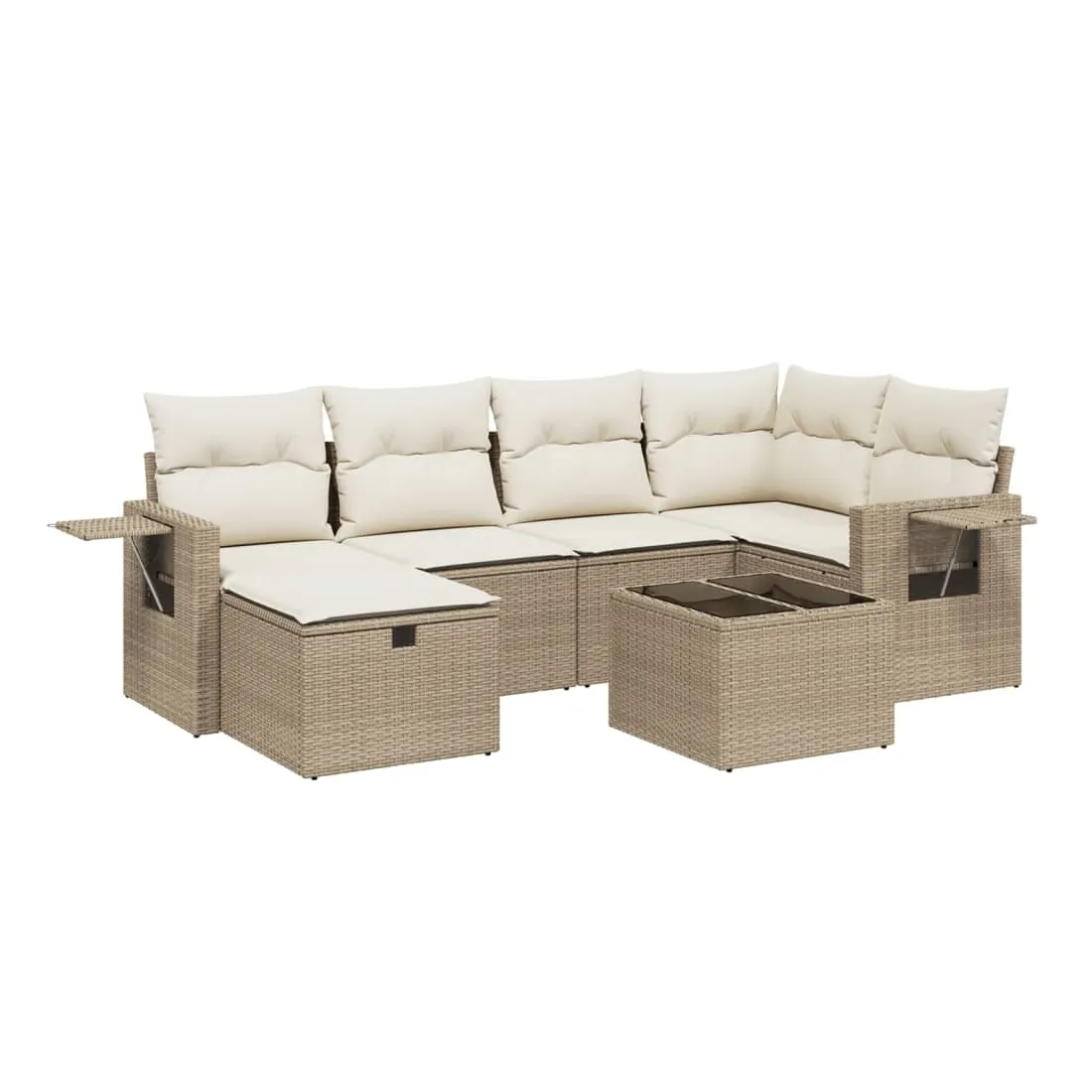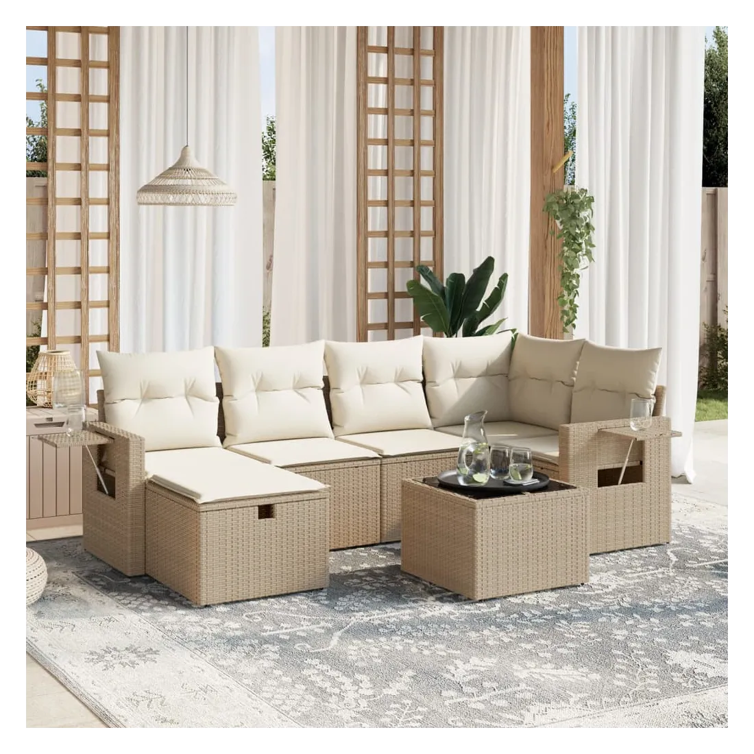 Cet ensemble de canapés de jardin est le complément parfait de votre arrière-cour, terrasse ou patio, offrant un espace confortable et accueillant pour discuter avec la famille et les amis ou simplement se détendre et profiter de l'extérieur. Matériau durable : la résine tressée, également connue sous le nom de poly rotin, est un matériau synthétique solide et nécessitant peu d'entretien qui ressemble au rotin naturel. Il est léger, facile à nettoyer et couramment utilisé pour les meubles d'extérieur en raison de sa durabilité et de ses propriétés de résistance aux intempéries.Dessus en verre : le dessus de la table d'extérieur est fabriqué en verre trempé solide et durable, ce qui le rend facile à nettoyer avec un chiffon humide et ajoute une touche d'élégance à votre espace extérieur.Housse amovible et lavable : ces coussins de siège sont dotés de housses amovibles pour un lavage et un entretien faciles.Cadre robuste et stable : le cadre en acier enduit de poudre assure la solidité et la stabilité du meuble de jardin pour une utilisation quotidienne à l'extérieur.Conception modulaire : cet ensemble de meubles d'extérieur a une conception modulaire, ce qui le rend complètement flexible et facile à déplacer, afin que vous puissiez créer un agencement de meubles d'extérieur personnalisé. Bon à savoir :Pour que vos meubles d'extérieur restent beaux, nous vous recommandons de les protéger avec une housse imperméable.