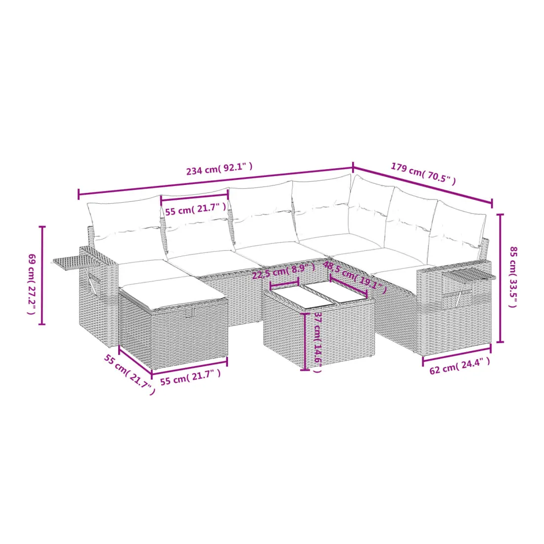 Cet ensemble de canapés de jardin est le complément parfait de votre arrière-cour, terrasse ou patio, offrant un espace confortable et accueillant pour discuter avec la famille et les amis ou simplement se détendre et profiter de l'extérieur. Matériau durable : la résine tressée, également connue sous le nom de poly rotin, est un matériau synthétique solide et nécessitant peu d'entretien qui ressemble au rotin naturel. Il est léger, facile à nettoyer et couramment utilisé pour les meubles d'extérieur en raison de sa durabilité et de ses propriétés de résistance aux intempéries.Dessus en verre : le dessus de la table d'extérieur est fabriqué en verre trempé solide et durable, ce qui le rend facile à nettoyer avec un chiffon humide et ajoute une touche d'élégance à votre espace extérieur.Housse amovible et lavable : ces coussins de siège sont dotés de housses amovibles pour un lavage et un entretien faciles.Cadre robuste et stable : le cadre en acier enduit de poudre assure la solidité et la stabilité du meuble de jardin pour une utilisation quotidienne à l'extérieur.Conception modulaire : cet ensemble de meubles d'extérieur a une conception modulaire, ce qui le rend complètement flexible et facile à déplacer, afin que vous puissiez créer un agencement de meubles d'extérieur personnalisé. Bon à savoir :Pour que vos meubles d'extérieur restent beaux, nous vous recommandons de les protéger avec une housse imperméable.