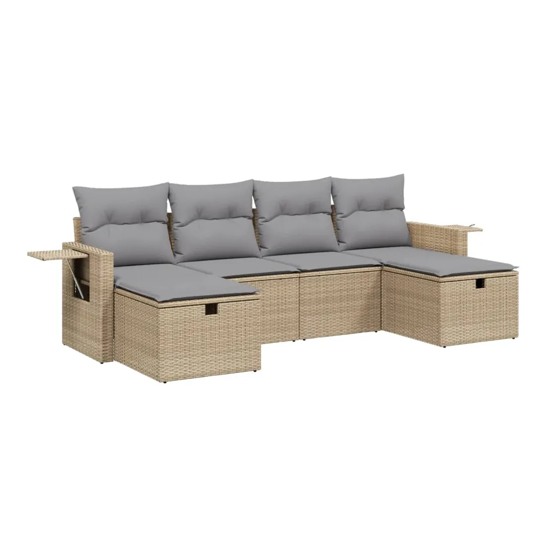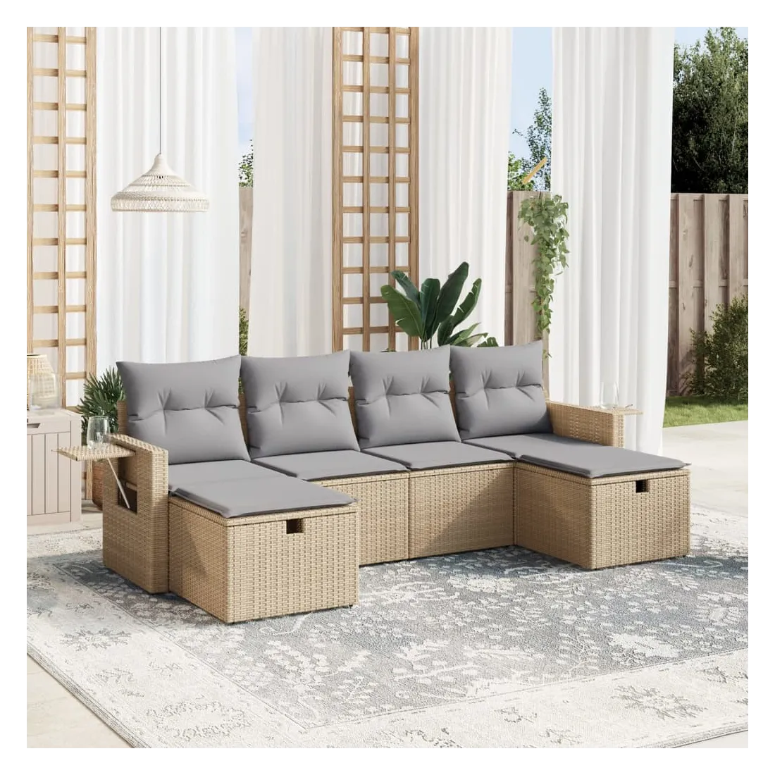 Cet ensemble de canapés de jardin est le complément parfait de votre arrière-cour, terrasse ou patio, offrant un espace confortable et accueillant pour discuter avec la famille et les amis ou simplement se détendre et profiter de l'extérieur. Matériau durable : la résine tressée, également connue sous le nom de poly rotin, est un matériau synthétique solide et nécessitant peu d'entretien qui ressemble au rotin naturel. Il est léger, facile à nettoyer et couramment utilisé pour les meubles d'extérieur en raison de sa durabilité et de ses propriétés de résistance aux intempéries.Expérience d'assise confortable : ce mobilier d'extérieur, doté de coussins épais, offre une expérience d'assise confortable.Housse amovible et lavable : ces coussins de siège sont dotés de housses amovibles pour un lavage et un entretien faciles.Cadre robuste et stable : le cadre en acier enduit de poudre assure la solidité et la stabilité du meuble de jardin pour une utilisation quotidienne à l'extérieur.Conception modulaire : cet ensemble de meubles d'extérieur a une conception modulaire, ce qui le rend complètement flexible et facile à déplacer, afin que vous puissiez créer un agencement de meubles d'extérieur personnalisé. Bon à savoir :Pour que vos meubles d'extérieur restent beaux, nous vous recommandons de les protéger avec une housse imperméable.