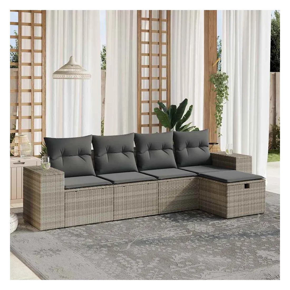 Cet ensemble de canapés de jardin est le complément parfait de votre arrière-cour, terrasse ou patio, offrant un espace confortable et accueillant pour discuter avec la famille et les amis ou simplement se détendre et profiter de l'extérieur. Matériau durable : la résine tressée, également connue sous le nom de poly rotin, est un matériau synthétique solide et nécessitant peu d'entretien qui ressemble au rotin naturel. Il est léger, facile à nettoyer et couramment utilisé pour les meubles d'extérieur en raison de sa durabilité et de ses propriétés de résistance aux intempéries.Expérience d'assise confortable : ce mobilier d'extérieur, doté de coussins épais, offre une expérience d'assise confortable.Housse amovible et lavable : ces coussins de siège sont dotés de housses amovibles pour un lavage et un entretien faciles.Cadre robuste et stable : le cadre en acier enduit de poudre assure la solidité et la stabilité du meuble de jardin pour une utilisation quotidienne à l'extérieur.Conception modulaire : cet ensemble de meubles d'extérieur a une conception modulaire, ce qui le rend complètement flexible et facile à déplacer, afin que vous puissiez créer un agencement de meubles d'extérieur personnalisé. Bon à savoir :Pour que vos meubles d'extérieur restent beaux, nous vous recommandons de les protéger avec une housse imperméable.