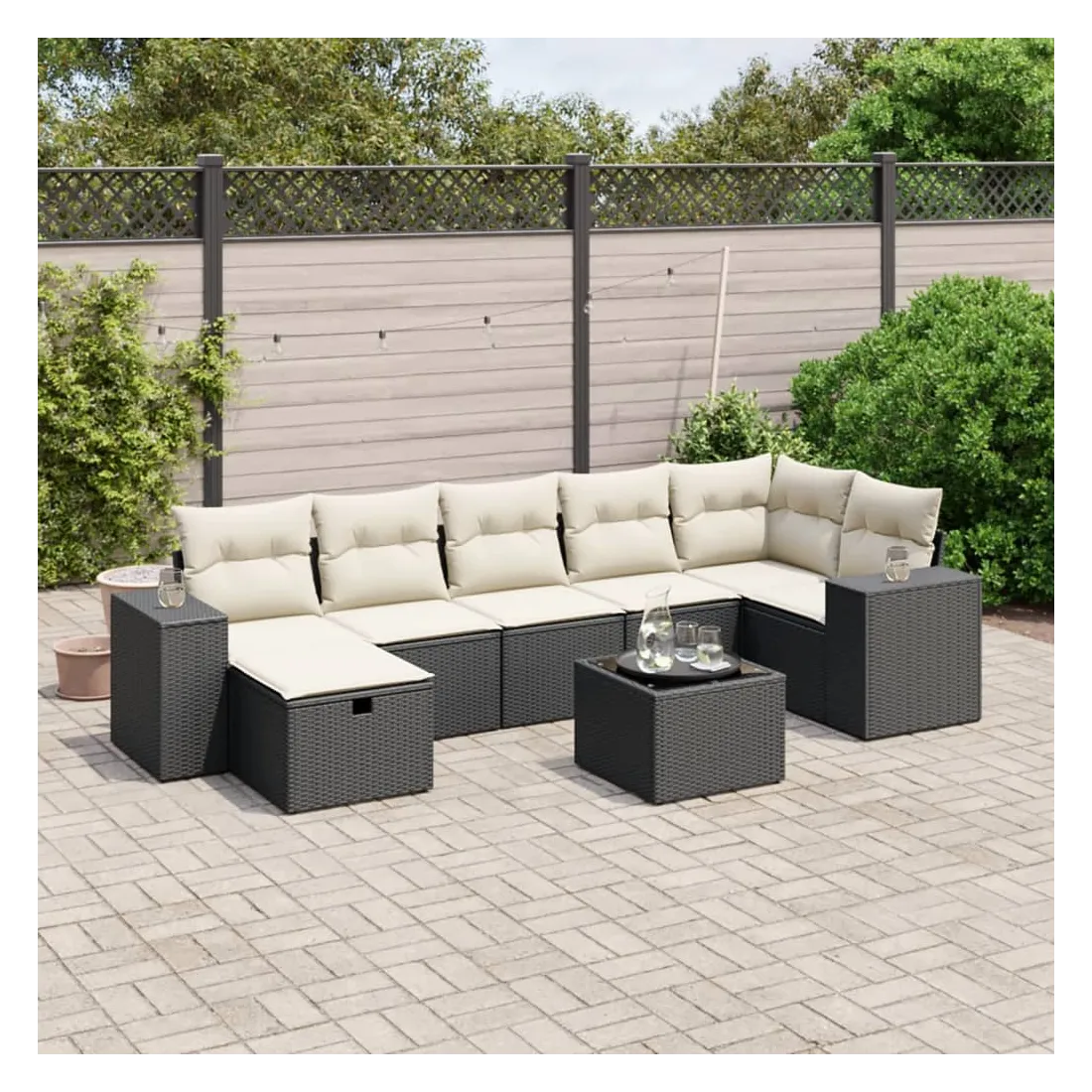 Cet ensemble de canapés de jardin est le complément parfait de votre arrière-cour, terrasse ou patio, offrant un espace confortable et accueillant pour discuter avec la famille et les amis ou simplement se détendre et profiter de l'extérieur. Matériau durable : la résine tressée, également connue sous le nom de poly rotin, est un matériau synthétique solide et nécessitant peu d'entretien qui ressemble au rotin naturel. Il est léger, facile à nettoyer et couramment utilisé pour les meubles d'extérieur en raison de sa durabilité et de ses propriétés de résistance aux intempéries.Dessus en verre : le dessus de la table d'extérieur est fabriqué en verre trempé solide et durable, ce qui le rend facile à nettoyer avec un chiffon humide et ajoute une touche d'élégance à votre espace extérieur.Housse amovible et lavable : ces coussins de siège sont dotés de housses amovibles pour un lavage et un entretien faciles.Cadre robuste et stable : le cadre en acier enduit de poudre assure la solidité et la stabilité du meuble de jardin pour une utilisation quotidienne à l'extérieur.Conception modulaire : cet ensemble de meubles d'extérieur a une conception modulaire, ce qui le rend complètement flexible et facile à déplacer, afin que vous puissiez créer un agencement de meubles d'extérieur personnalisé. Bon à savoir :Pour que vos meubles d'extérieur restent beaux, nous vous recommandons de les protéger avec une housse imperméable.