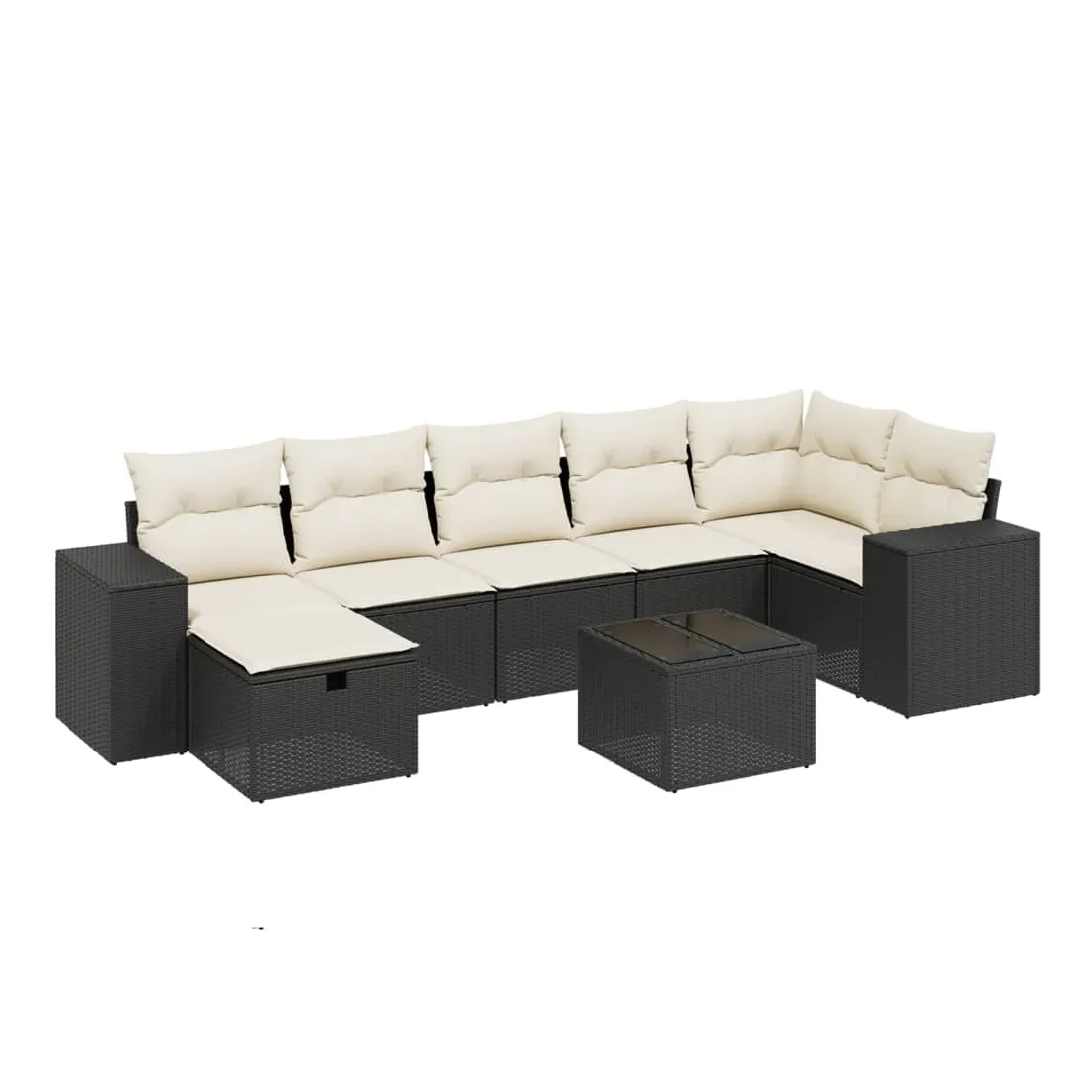 Salon de jardin 8 pcs avec coussins noir résine tressée