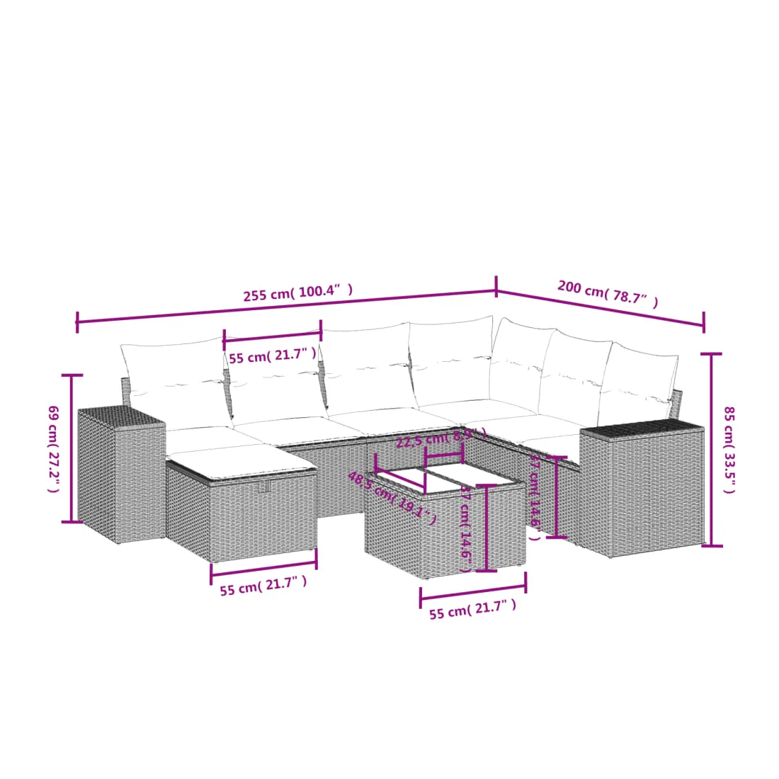 • Dimensions : 55 x 55 x 37 cm (L x l x H)