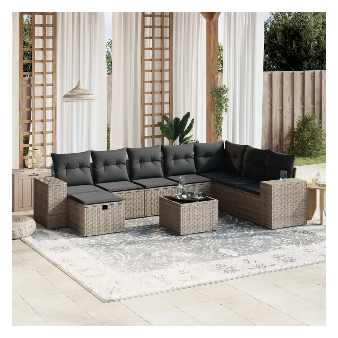 Cet ensemble de canapés de jardin est le complément parfait de votre arrière-cour, terrasse ou patio, offrant un espace confortable et accueillant pour discuter avec la famille et les amis ou simplement se détendre et profiter de l'extérieur. Matériau durable : la résine tressée, également connue sous le nom de poly rotin, est un matériau synthétique solide et nécessitant peu d'entretien qui ressemble au rotin naturel. Il est léger, facile à nettoyer et couramment utilisé pour les meubles d'extérieur en raison de sa durabilité et de ses propriétés de résistance aux intempéries.Dessus en verre : le dessus de la table d'extérieur est fabriqué en verre trempé solide et durable, ce qui le rend facile à nettoyer avec un chiffon humide et ajoute une touche d'élégance à votre espace extérieur.Housse amovible et lavable : ces coussins de siège sont dotés de housses amovibles pour un lavage et un entretien faciles.Cadre robuste et stable : le cadre en acier enduit de poudre assure la solidité et la stabilité du meuble de jardin pour une utilisation quotidienne à l'extérieur.Conception modulaire : cet ensemble de meubles d'extérieur a une conception modulaire, ce qui le rend complètement flexible et facile à déplacer, afin que vous puissiez créer un agencement de meubles d'extérieur personnalisé. Bon à savoir :Pour que vos meubles d'extérieur restent beaux, nous vous recommandons de les protéger avec une housse imperméable.