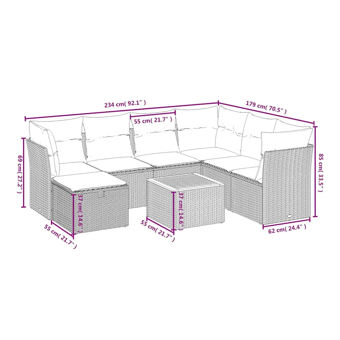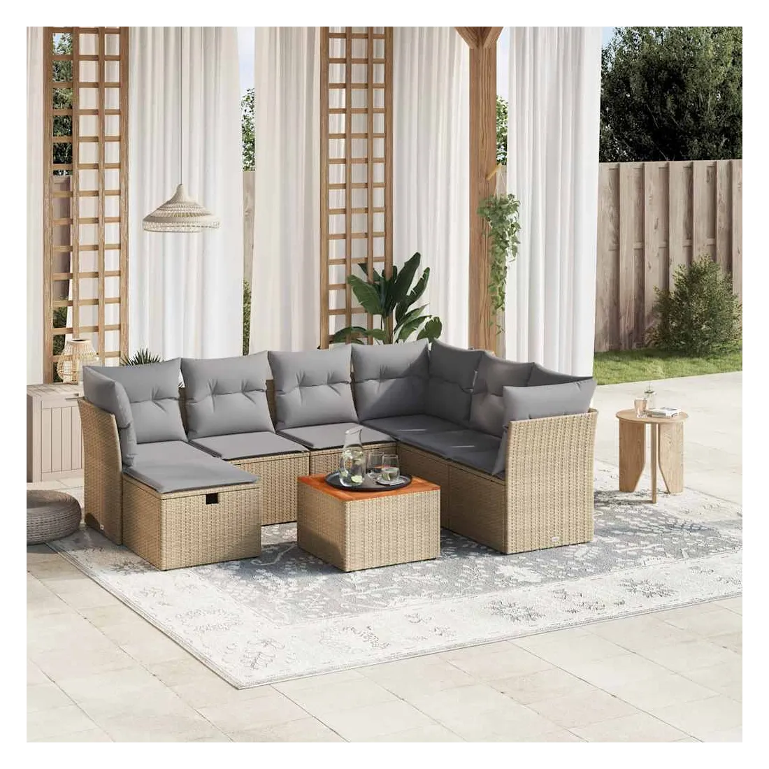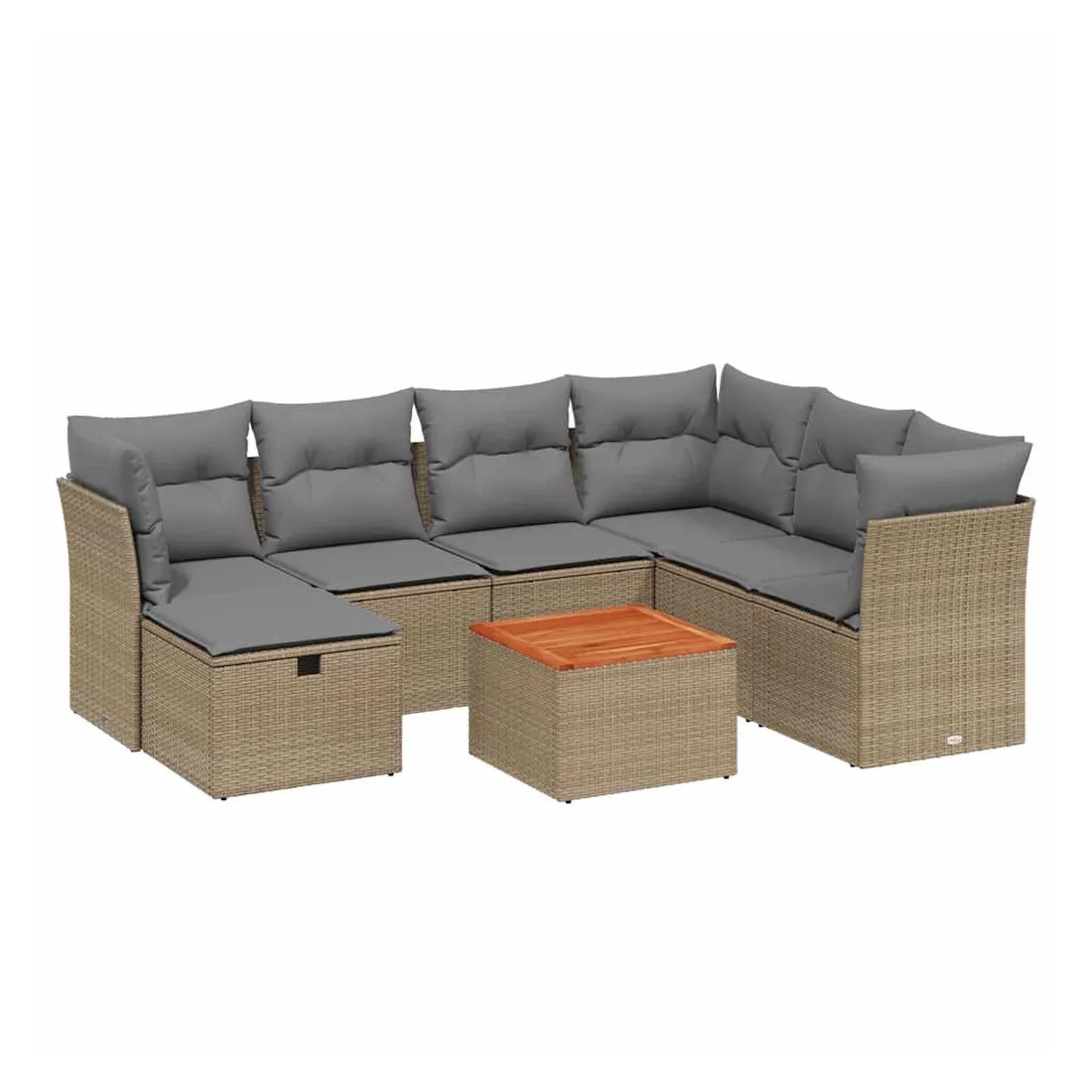 Salon de jardin avec coussins 8pcs mélange beige résine tressée
