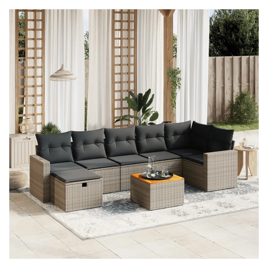 Cet ensemble de canapés de jardin est le complément parfait de votre arrière-cour, terrasse ou patio, offrant un espace confortable et accueillant pour discuter avec la famille et les amis ou simplement se détendre et profiter de l'extérieur. Matériau durable : la résine tressée, également connue sous le nom de poly rotin, est un matériau synthétique solide et nécessitant peu d'entretien qui ressemble au rotin naturel. Il est léger, facile à nettoyer et couramment utilisé pour les meubles d'extérieur en raison de sa durabilité et de ses propriétés de résistance aux intempéries.Dessus stable et facile à nettoyer : cette table de jardin a un dessus en bois d'acacia robuste, durable et facile à nettoyer avec un chiffon humide.Housse amovible et lavable : ces coussins de siège sont dotés de housses amovibles pour un lavage et un entretien faciles.Cadre robuste et stable : le cadre en acier enduit de poudre assure la solidité et la stabilité du meuble de jardin pour une utilisation quotidienne à l'extérieur.Conception modulaire : cet ensemble de meubles d'extérieur a une conception modulaire, ce qui le rend complètement flexible et facile à déplacer, afin que vous puissiez créer un agencement de meubles d'extérieur personnalisé. Bon à savoir :Pour que vos meubles d'extérieur restent beaux, nous vous recommandons de les protéger avec une housse imperméable.