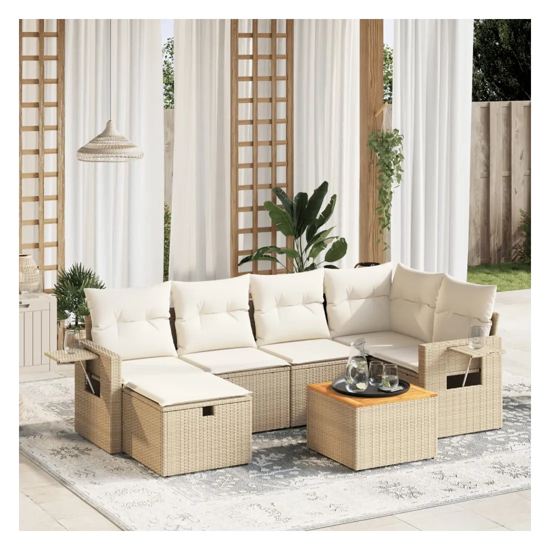 Cet ensemble de canapés de jardin est le complément parfait de votre arrière-cour, terrasse ou patio, offrant un espace confortable et accueillant pour discuter avec la famille et les amis ou simplement se détendre et profiter de l'extérieur. Matériau durable : la résine tressée, également connue sous le nom de poly rotin, est un matériau synthétique solide et nécessitant peu d'entretien qui ressemble au rotin naturel. Il est léger, facile à nettoyer et couramment utilisé pour les meubles d'extérieur en raison de sa durabilité et de ses propriétés de résistance aux intempéries.Dessus stable et facile à nettoyer : cette table de jardin a un dessus en bois d'acacia robuste, durable et facile à nettoyer avec un chiffon humide.Housse amovible et lavable : ces coussins de siège sont dotés de housses amovibles pour un lavage et un entretien faciles.Cadre robuste et stable : le cadre en acier enduit de poudre assure la solidité et la stabilité du meuble de jardin pour une utilisation quotidienne à l'extérieur.Conception modulaire : cet ensemble de meubles d'extérieur a une conception modulaire, ce qui le rend complètement flexible et facile à déplacer, afin que vous puissiez créer un agencement de meubles d'extérieur personnalisé. Bon à savoir :Pour que vos meubles d'extérieur restent beaux, nous vous recommandons de les protéger avec une housse imperméable.