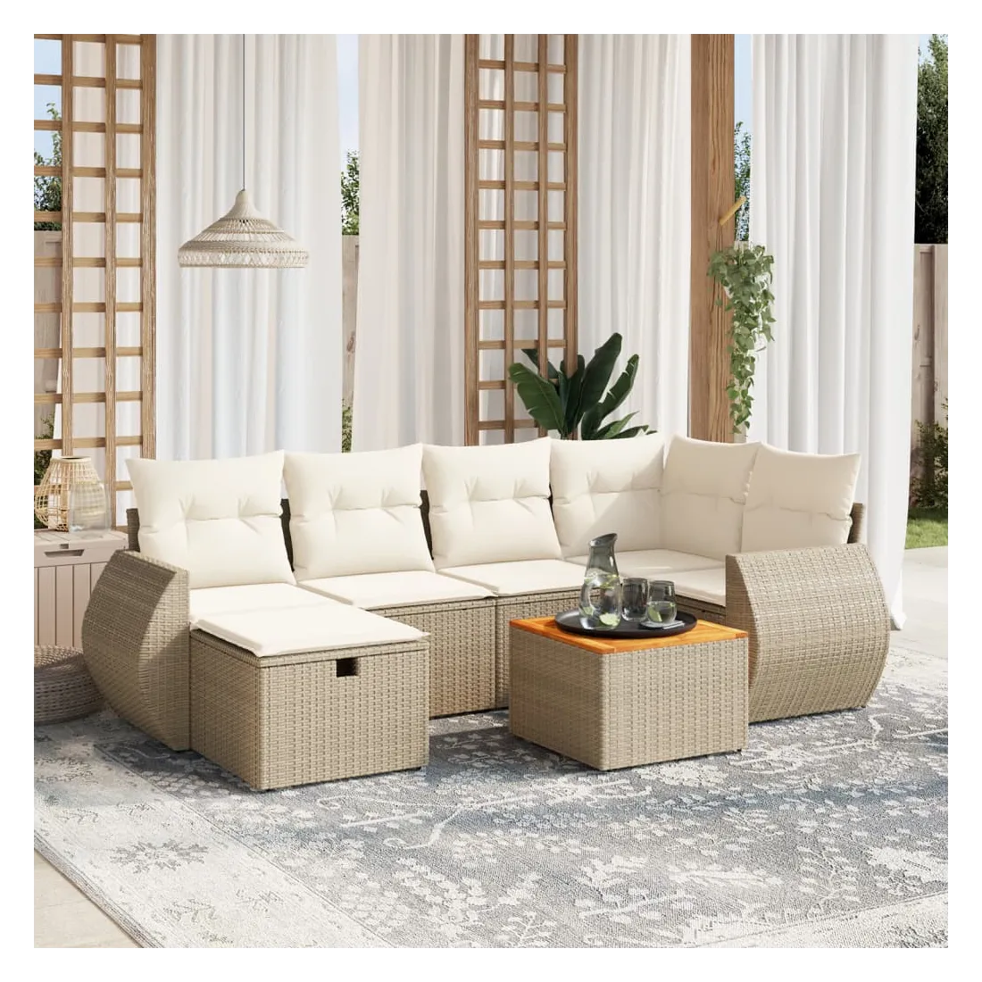 Cet ensemble de canapés de jardin est le complément parfait de votre arrière-cour, terrasse ou patio, offrant un espace confortable et accueillant pour discuter avec la famille et les amis ou simplement se détendre et profiter de l'extérieur. Matériau durable : la résine tressée, également connue sous le nom de poly rotin, est un matériau synthétique solide et nécessitant peu d'entretien qui ressemble au rotin naturel. Il est léger, facile à nettoyer et couramment utilisé pour les meubles d'extérieur en raison de sa durabilité et de ses propriétés de résistance aux intempéries.Dessus stable et facile à nettoyer : cette table de jardin a un dessus en bois d'acacia robuste, durable et facile à nettoyer avec un chiffon humide.Housse amovible et lavable : ces coussins de siège sont dotés de housses amovibles pour un lavage et un entretien faciles.Cadre robuste et stable : le cadre en acier enduit de poudre assure la solidité et la stabilité du meuble de jardin pour une utilisation quotidienne à l'extérieur.Conception modulaire : cet ensemble de meubles d'extérieur a une conception modulaire, ce qui le rend complètement flexible et facile à déplacer, afin que vous puissiez créer un agencement de meubles d'extérieur personnalisé. Bon à savoir :Pour que vos meubles d'extérieur restent beaux, nous vous recommandons de les protéger avec une housse imperméable.