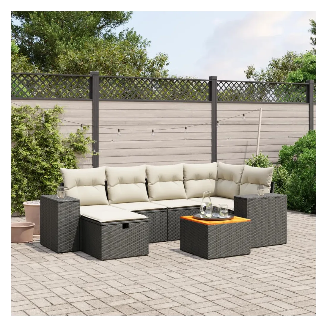 Cet ensemble de canapés de jardin est le complément parfait de votre arrière-cour, terrasse ou patio, offrant un espace confortable et accueillant pour discuter avec la famille et les amis ou simplement se détendre et profiter de l'extérieur. Matériau durable : la résine tressée, également connue sous le nom de poly rotin, est un matériau synthétique solide et nécessitant peu d'entretien qui ressemble au rotin naturel. Il est léger, facile à nettoyer et couramment utilisé pour les meubles d'extérieur en raison de sa durabilité et de ses propriétés de résistance aux intempéries.Dessus stable et facile à nettoyer : cette table de jardin a un dessus en bois d'acacia robuste, durable et facile à nettoyer avec un chiffon humide.Housse amovible et lavable : ces coussins de siège sont dotés de housses amovibles pour un lavage et un entretien faciles.Cadre robuste et stable : le cadre en acier enduit de poudre assure la solidité et la stabilité du meuble de jardin pour une utilisation quotidienne à l'extérieur.Conception modulaire : cet ensemble de meubles d'extérieur a une conception modulaire, ce qui le rend complètement flexible et facile à déplacer, afin que vous puissiez créer un agencement de meubles d'extérieur personnalisé. Bon à savoir :Pour que vos meubles d'extérieur restent beaux, nous vous recommandons de les protéger avec une housse imperméable.