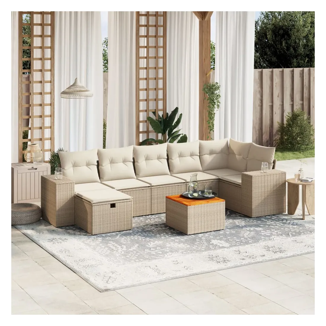 Cet ensemble de canapés de jardin est le complément parfait de votre arrière-cour, terrasse ou patio, offrant un espace confortable et accueillant pour discuter avec la famille et les amis ou simplement se détendre et profiter de l'extérieur. Matériau durable : la résine tressée, également connue sous le nom de poly rotin, est un matériau synthétique solide et nécessitant peu d'entretien qui ressemble au rotin naturel. Il est léger, facile à nettoyer et couramment utilisé pour les meubles d'extérieur en raison de sa durabilité et de ses propriétés de résistance aux intempéries.Dessus stable et facile à nettoyer : cette table de jardin a un dessus en bois d'acacia robuste, durable et facile à nettoyer avec un chiffon humide.Housse amovible et lavable : ces coussins de siège sont dotés de housses amovibles pour un lavage et un entretien faciles.Cadre robuste et stable : le cadre en acier enduit de poudre assure la solidité et la stabilité du meuble de jardin pour une utilisation quotidienne à l'extérieur.Conception modulaire : cet ensemble de meubles d'extérieur a une conception modulaire, ce qui le rend complètement flexible et facile à déplacer, afin que vous puissiez créer un agencement de meubles d'extérieur personnalisé. Bon à savoir :Pour que vos meubles d'extérieur restent beaux, nous vous recommandons de les protéger avec une housse imperméable.