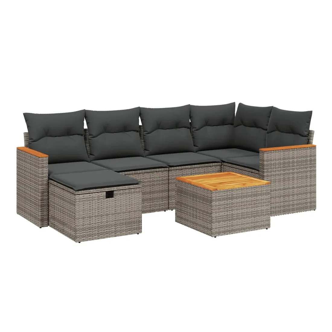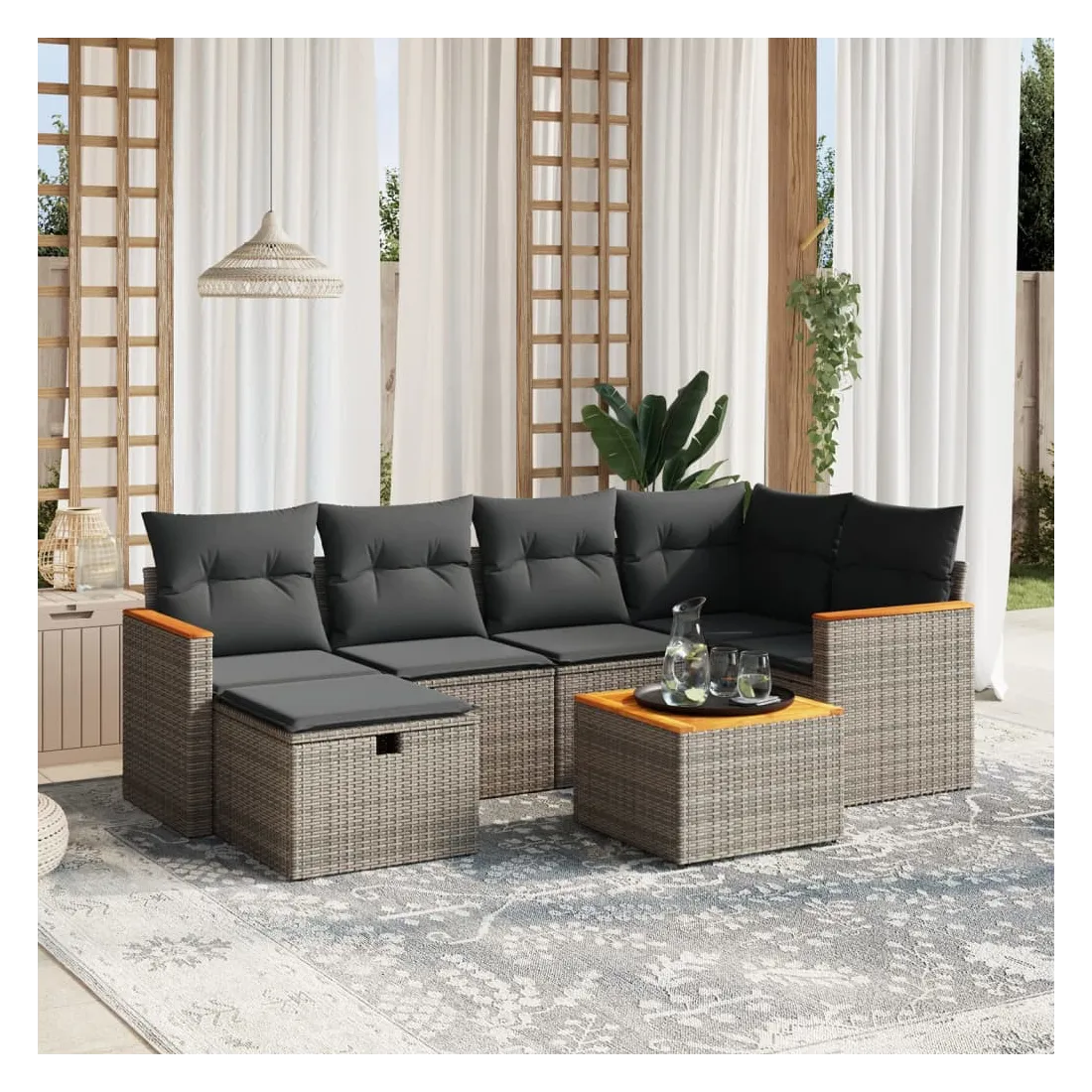 Cet ensemble de canapés de jardin est le complément parfait de votre arrière-cour, terrasse ou patio, offrant un espace confortable et accueillant pour discuter avec la famille et les amis ou simplement se détendre et profiter de l'extérieur. Matériau durable : la résine tressée, également connue sous le nom de poly rotin, est un matériau synthétique solide et nécessitant peu d'entretien qui ressemble au rotin naturel. Il est léger, facile à nettoyer et couramment utilisé pour les meubles d'extérieur en raison de sa durabilité et de ses propriétés de résistance aux intempéries.Dessus stable et facile à nettoyer : cette table de jardin a un dessus en bois d'acacia robuste, durable et facile à nettoyer avec un chiffon humide.Housse amovible et lavable : ces coussins de siège sont dotés de housses amovibles pour un lavage et un entretien faciles.Cadre robuste et stable : le cadre en acier enduit de poudre assure la solidité et la stabilité du meuble de jardin pour une utilisation quotidienne à l'extérieur.Conception modulaire : cet ensemble de meubles d'extérieur a une conception modulaire, ce qui le rend complètement flexible et facile à déplacer, afin que vous puissiez créer un agencement de meubles d'extérieur personnalisé. Bon à savoir :Pour que vos meubles d'extérieur restent beaux, nous vous recommandons de les protéger avec une housse imperméable.