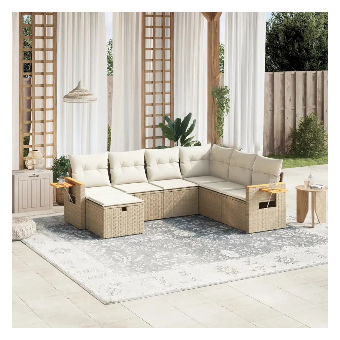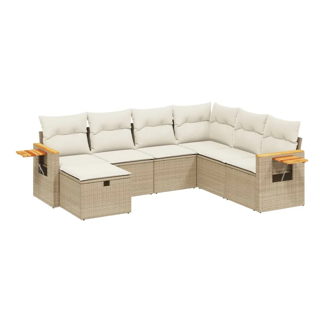 Salon de jardin avec coussins 7 pcs beige résine tressée