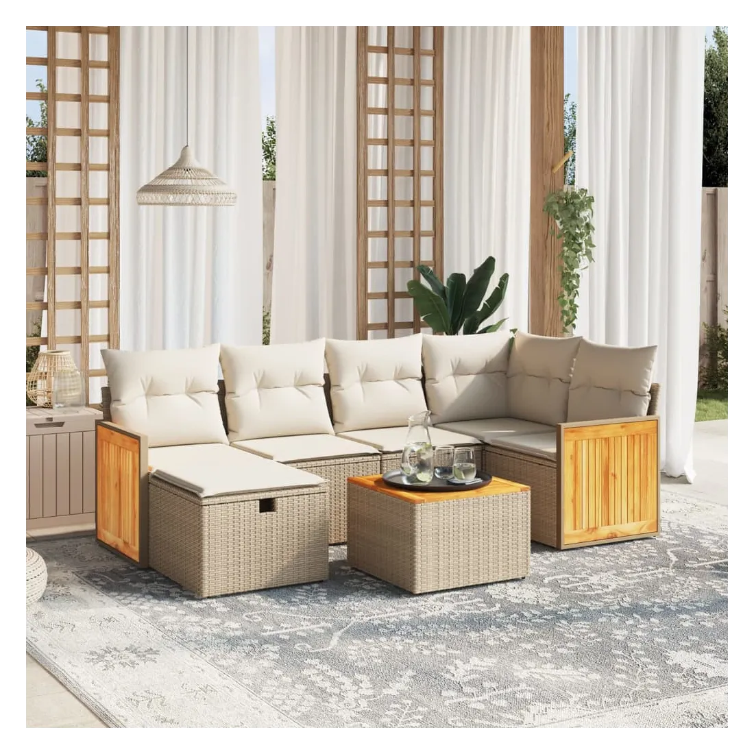 Cet ensemble de canapés de jardin est le complément parfait de votre arrière-cour, terrasse ou patio, offrant un espace confortable et accueillant pour discuter avec la famille et les amis ou simplement se détendre et profiter de l'extérieur. Matériau durable : la résine tressée, également connue sous le nom de poly rotin, est un matériau synthétique solide et nécessitant peu d'entretien qui ressemble au rotin naturel. Il est léger, facile à nettoyer et couramment utilisé pour les meubles d'extérieur en raison de sa durabilité et de ses propriétés de résistance aux intempéries.Dessus stable et facile à nettoyer : cette table de jardin a un dessus en bois d'acacia robuste, durable et facile à nettoyer avec un chiffon humide.Housse amovible et lavable : ces coussins de siège sont dotés de housses amovibles pour un lavage et un entretien faciles.Cadre robuste et stable : le cadre en acier enduit de poudre assure la solidité et la stabilité du meuble de jardin pour une utilisation quotidienne à l'extérieur.Conception modulaire : cet ensemble de meubles d'extérieur a une conception modulaire, ce qui le rend complètement flexible et facile à déplacer, afin que vous puissiez créer un agencement de meubles d'extérieur personnalisé. Bon à savoir :Pour que vos meubles d'extérieur restent beaux, nous vous recommandons de les protéger avec une housse imperméable.