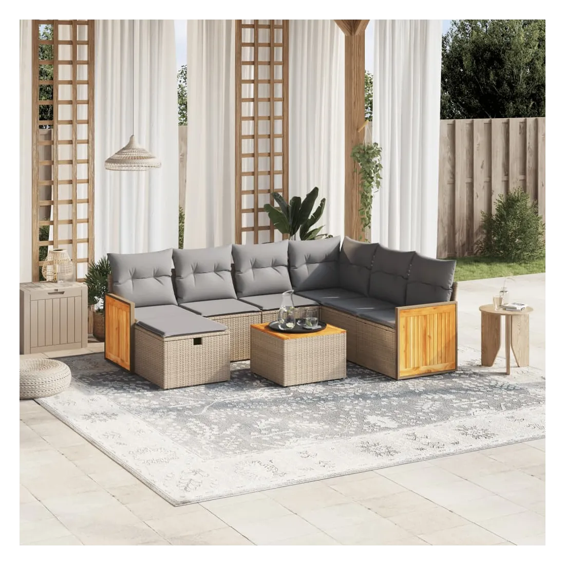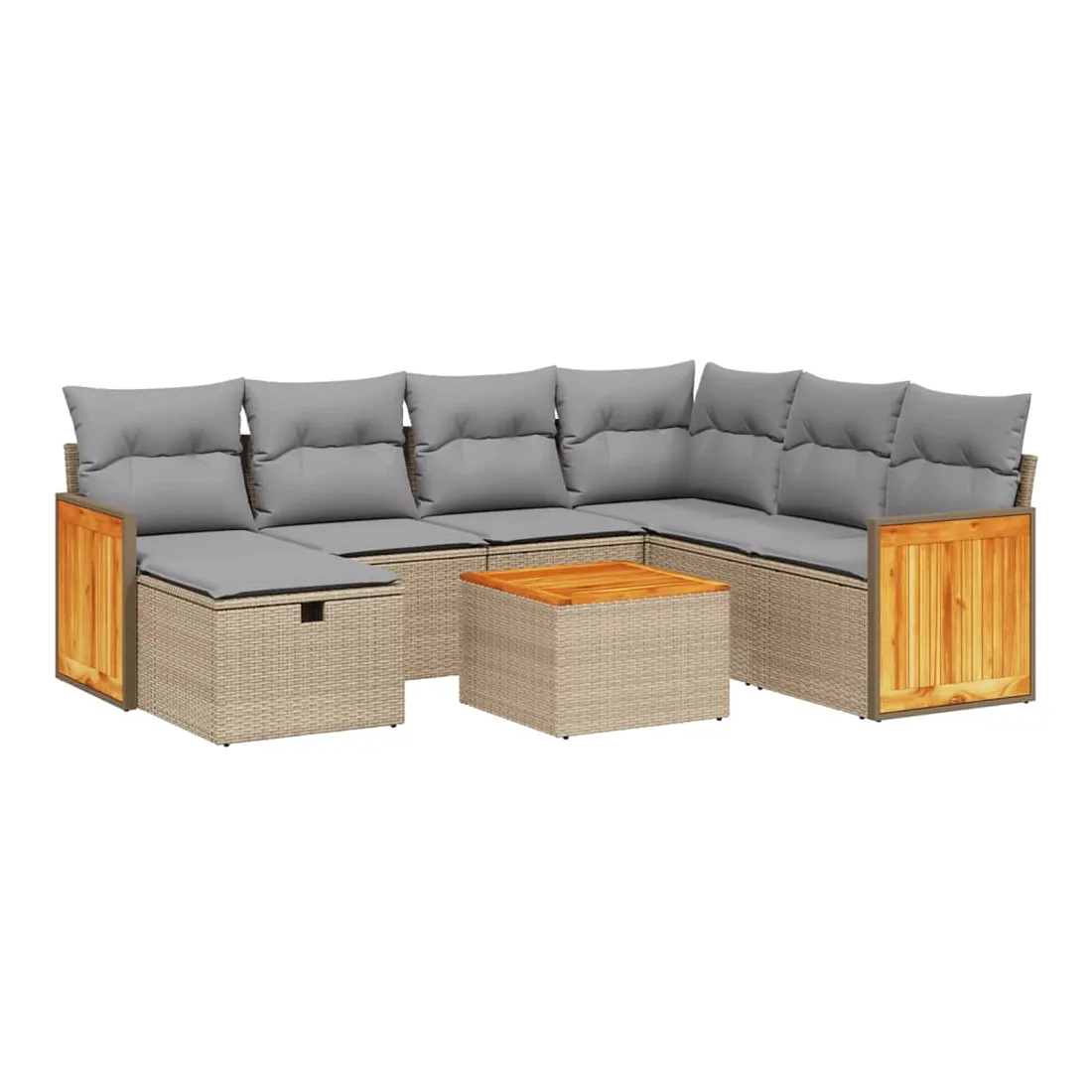Salon de jardin avec coussins 8pcs mélange beige résine tressée