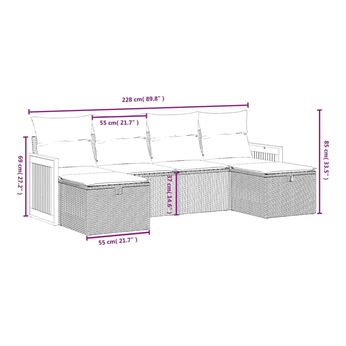 Cet ensemble de canapés de jardin est le complément parfait de votre arrière-cour, terrasse ou patio, offrant un espace confortable et accueillant pour discuter avec la famille et les amis ou simplement se détendre et profiter de l'extérieur. Matériau durable : la résine tressée, également connue sous le nom de poly rotin, est un matériau synthétique solide et nécessitant peu d'entretien qui ressemble au rotin naturel. Il est léger, facile à nettoyer et couramment utilisé pour les meubles d'extérieur en raison de sa durabilité et de ses propriétés de résistance aux intempéries.Expérience d'assise confortable : ce mobilier d'extérieur, doté de coussins épais, offre une expérience d'assise confortable.Housse amovible et lavable : ces coussins de siège sont dotés de housses amovibles pour un lavage et un entretien faciles.Cadre robuste et stable : le cadre en acier enduit de poudre assure la solidité et la stabilité du meuble de jardin pour une utilisation quotidienne à l'extérieur.Conception modulaire : cet ensemble de meubles d'extérieur a une conception modulaire, ce qui le rend complètement flexible et facile à déplacer, afin que vous puissiez créer un agencement de meubles d'extérieur personnalisé. Bon à savoir :Pour que vos meubles d'extérieur restent beaux, nous vous recommandons de les protéger avec une housse imperméable.