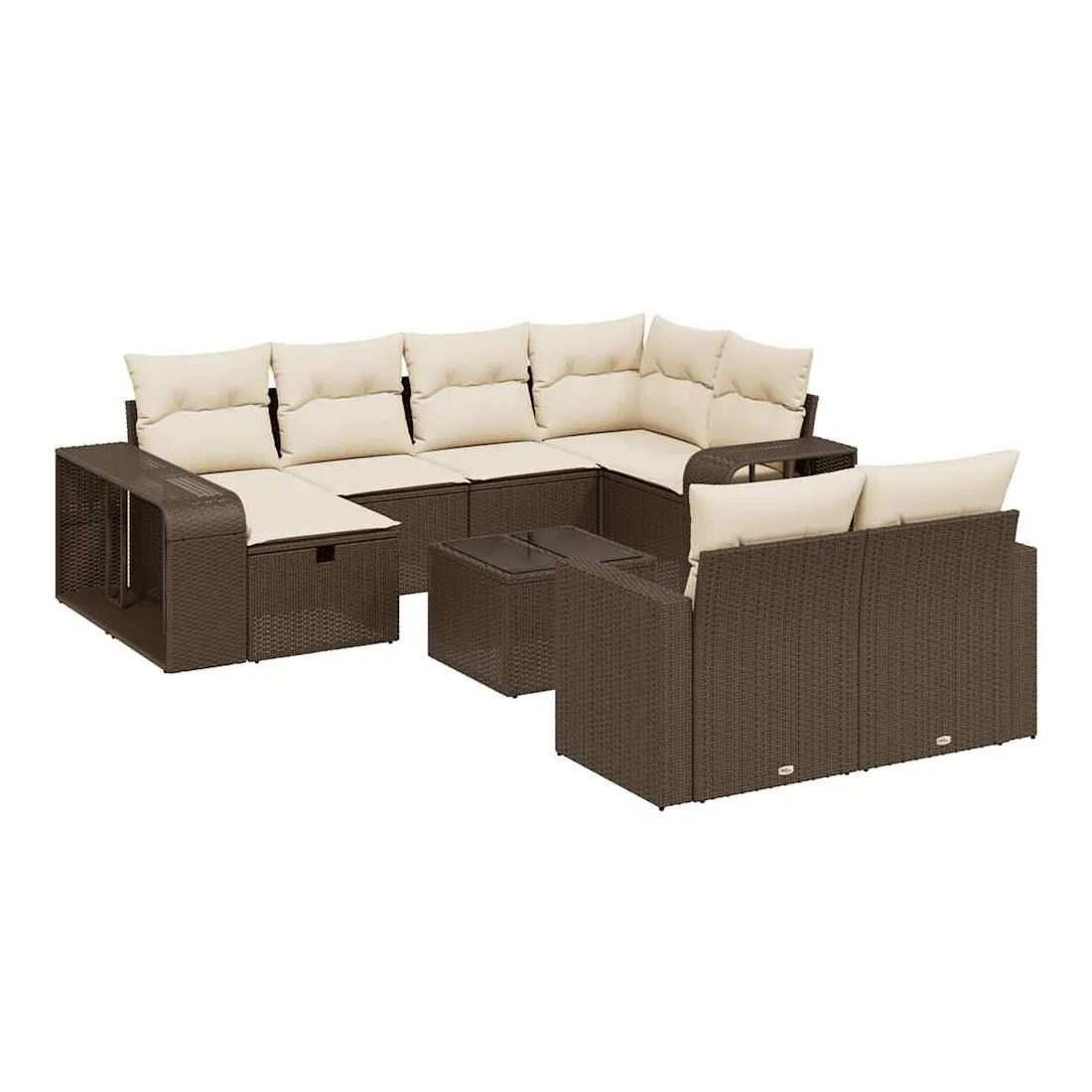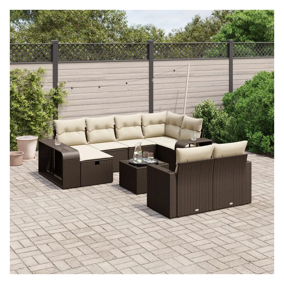Cet ensemble de canapés de jardin est le complément parfait de votre arrière-cour, terrasse ou patio, offrant un espace confortable et accueillant pour discuter avec la famille et les amis ou simplement se détendre et profiter de l'extérieur. Matériau durable : la résine tressée, également connue sous le nom de poly rotin, est un matériau synthétique solide et nécessitant peu d'entretien qui ressemble au rotin naturel. Il est léger, facile à nettoyer et couramment utilisé pour les meubles d'extérieur en raison de sa durabilité et de ses propriétés de résistance aux intempéries.Dessus en verre : le dessus de la table d'extérieur est fabriqué en verre trempé solide et durable, ce qui le rend facile à nettoyer avec un chiffon humide et ajoute une touche d'élégance à votre espace extérieur.Grand espace de rangement : avec un espace de rangement intégré, ce meuble d'extérieur offre un grand espace de rangement pour garder vos objets essentiels organisés et facilement accessibles.Housse amovible et lavable : ces coussins de siège sont dotés de housses amovibles pour un lavage et un entretien faciles.Conception modulaire : cet ensemble de meubles d'extérieur a une conception modulaire, ce qui le rend complètement flexible et facile à déplacer, afin que vous puissiez créer un agencement de meubles d'extérieur personnalisé. Bon à savoir :Pour que vos meubles d'extérieur restent beaux, nous vous recommandons de les protéger avec une housse imperméable.