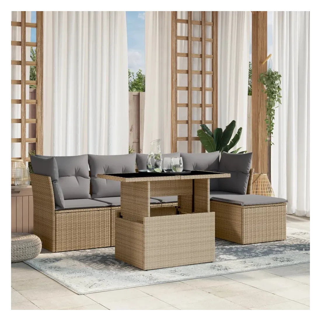 Cet ensemble de canapés de jardin est le complément parfait de votre arrière-cour, terrasse ou patio, offrant un espace confortable et accueillant pour discuter avec la famille et les amis ou simplement se détendre et profiter de l'extérieur. Matériau durable : la résine tressée, également connue sous le nom de poly rotin, est un matériau synthétique solide et nécessitant peu d'entretien qui ressemble au rotin naturel. Il est léger, facile à nettoyer et couramment utilisé pour les meubles d'extérieur en raison de sa durabilité et de ses propriétés de résistance aux intempéries.Dessus de table réglable : le dessus de table peut être soulevé pour rendre la table plus haute, ce qui transforme la table d'extérieur d'une table basse à une table de salle à manger. Elle est parfaite pour recevoir des invités ou prendre des repas à l'extérieur.Expérience d'assise confortable : ce mobilier d'extérieur, doté de coussins épais, offre une expérience d'assise confortable.Housse amovible et lavable : ces coussins de siège sont dotés de housses amovibles pour un lavage et un entretien faciles.Conception modulaire : cet ensemble de meubles d'extérieur a une conception modulaire, ce qui le rend complètement flexible et facile à déplacer, afin que vous puissiez créer un agencement de meubles d'extérieur personnalisé. Bon à savoir :Pour que vos meubles d'extérieur restent beaux, nous vous recommandons de les protéger avec une housse imperméable.