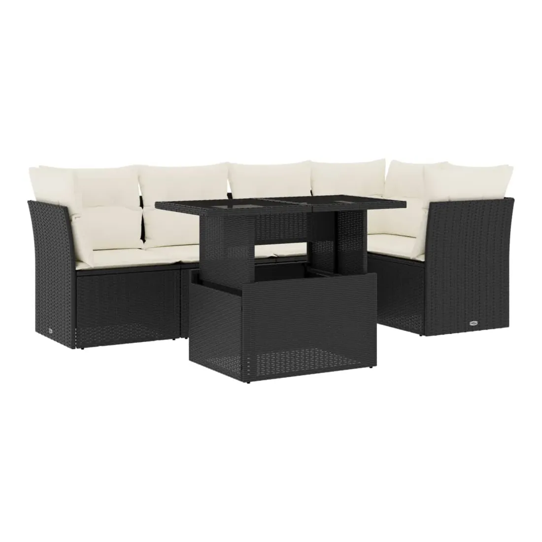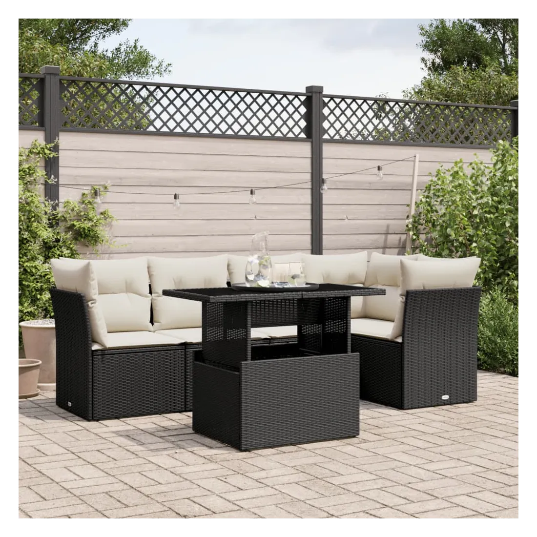 Salon de jardin 6 pcs avec coussins noir résine tressée