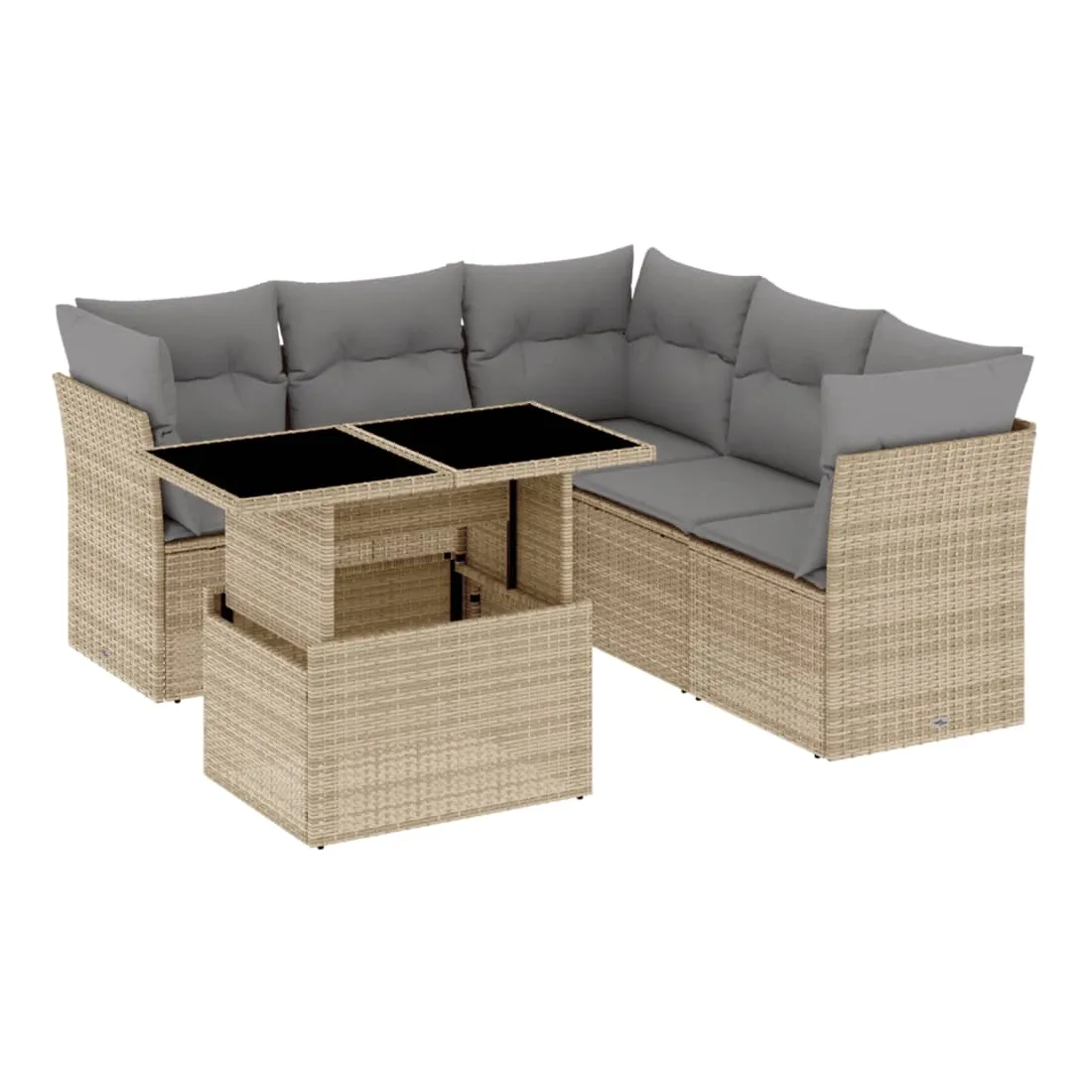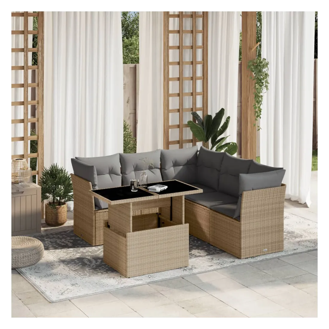Cet ensemble de canapés de jardin est le complément parfait de votre arrière-cour, terrasse ou patio, offrant un espace confortable et accueillant pour discuter avec la famille et les amis ou simplement se détendre et profiter de l'extérieur. Matériau durable : la résine tressée, également connue sous le nom de poly rotin, est un matériau synthétique solide et nécessitant peu d'entretien qui ressemble au rotin naturel. Il est léger, facile à nettoyer et couramment utilisé pour les meubles d'extérieur en raison de sa durabilité et de ses propriétés de résistance aux intempéries.Dessus de table réglable : le dessus de table peut être soulevé pour rendre la table plus haute, ce qui transforme la table d'extérieur d'une table basse à une table de salle à manger. Elle est parfaite pour recevoir des invités ou prendre des repas à l'extérieur.Expérience d'assise confortable : ce mobilier d'extérieur, doté de coussins épais, offre une expérience d'assise confortable.Housse amovible et lavable : ces coussins de siège sont dotés de housses amovibles pour un lavage et un entretien faciles.Conception modulaire : cet ensemble de meubles d'extérieur a une conception modulaire, ce qui le rend complètement flexible et facile à déplacer, afin que vous puissiez créer un agencement de meubles d'extérieur personnalisé. Bon à savoir :Pour que vos meubles d'extérieur restent beaux, nous vous recommandons de les protéger avec une housse imperméable.