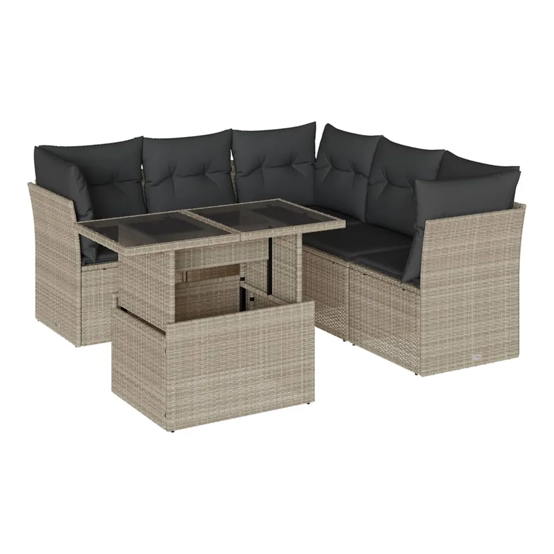Salon de jardin 6 pcs avec coussins gris clair résine tressée