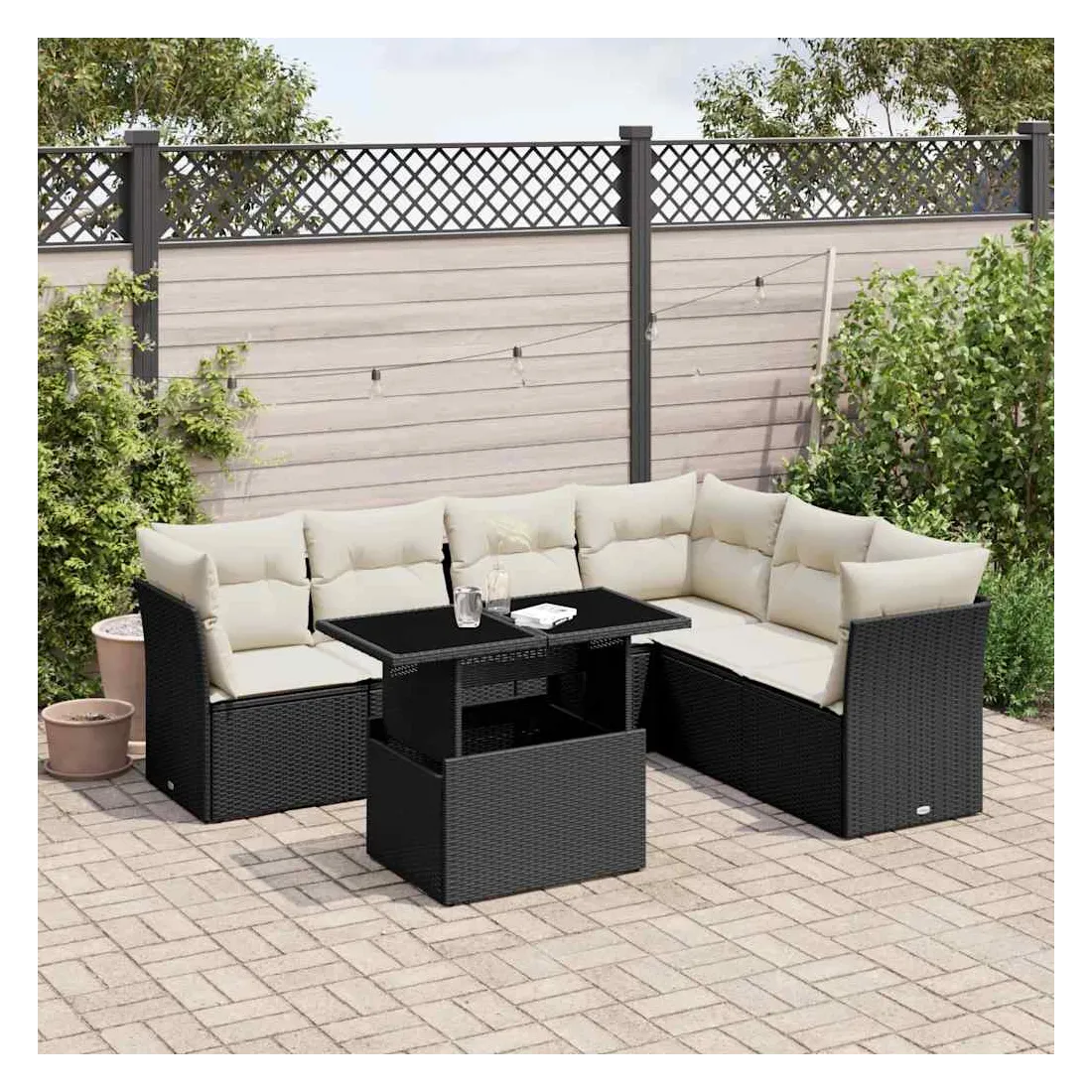 Cet ensemble de canapés de jardin est le complément parfait de votre arrière-cour, terrasse ou patio, offrant un espace confortable et accueillant pour discuter avec la famille et les amis ou simplement se détendre et profiter de l'extérieur. Matériau durable : la résine tressée, également connue sous le nom de poly rotin, est un matériau synthétique solide et nécessitant peu d'entretien qui ressemble au rotin naturel. Il est léger, facile à nettoyer et couramment utilisé pour les meubles d'extérieur en raison de sa durabilité et de ses propriétés de résistance aux intempéries.Dessus de table réglable : le dessus de table peut être soulevé pour rendre la table plus haute, ce qui transforme la table d'extérieur d'une table basse à une table de salle à manger. Elle est parfaite pour recevoir des invités ou prendre des repas à l'extérieur.Expérience d'assise confortable : ce mobilier d'extérieur, doté de coussins épais, offre une expérience d'assise confortable.Housse amovible et lavable : ces coussins de siège sont dotés de housses amovibles pour un lavage et un entretien faciles.Conception modulaire : cet ensemble de meubles d'extérieur a une conception modulaire, ce qui le rend complètement flexible et facile à déplacer, afin que vous puissiez créer un agencement de meubles d'extérieur personnalisé. Bon à savoir :Pour que vos meubles d'extérieur restent beaux, nous vous recommandons de les protéger avec une housse imperméable.