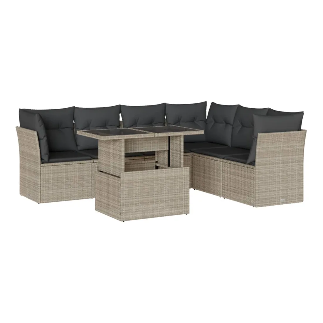 Salon de jardin avec coussins 7 pcs gris clair résine tressée