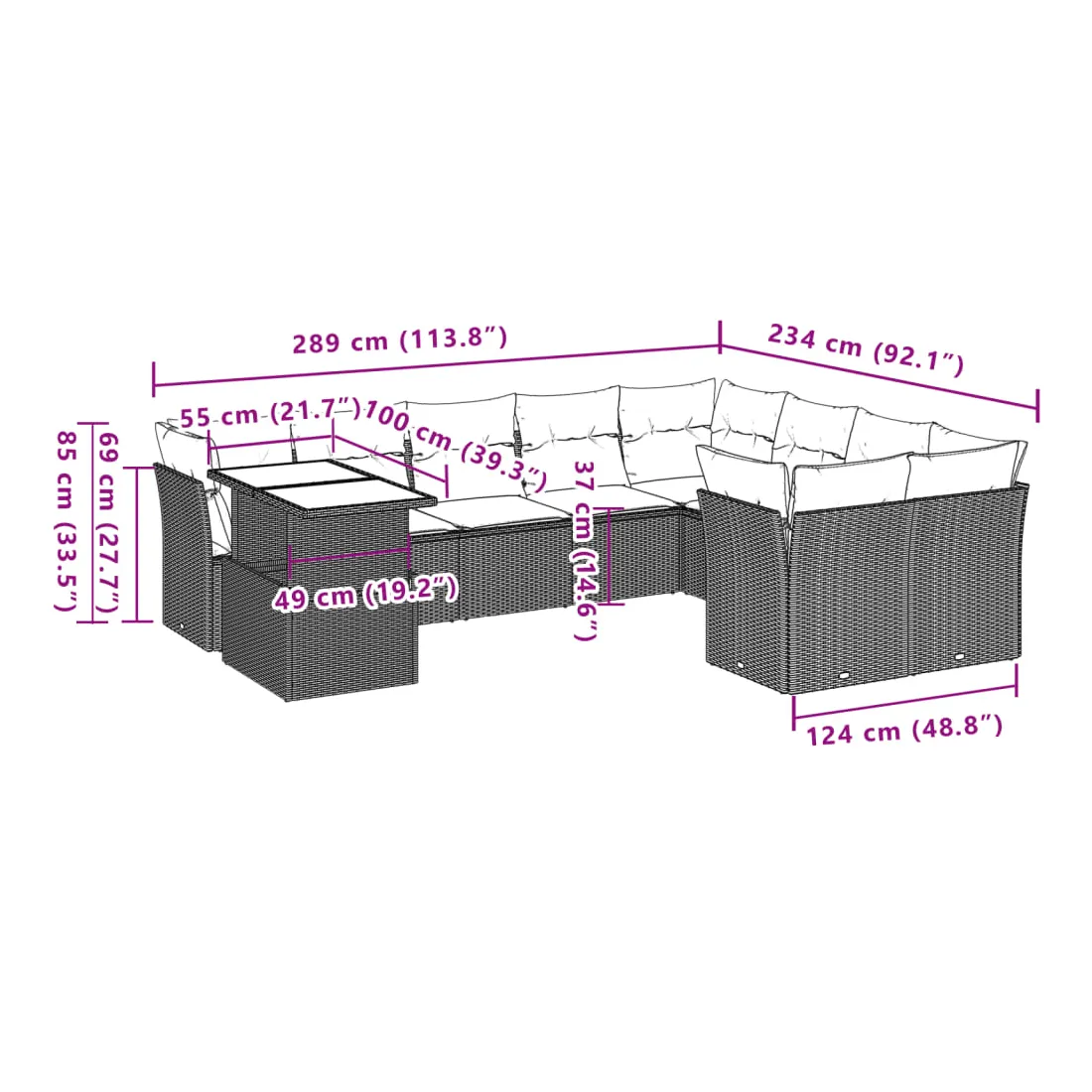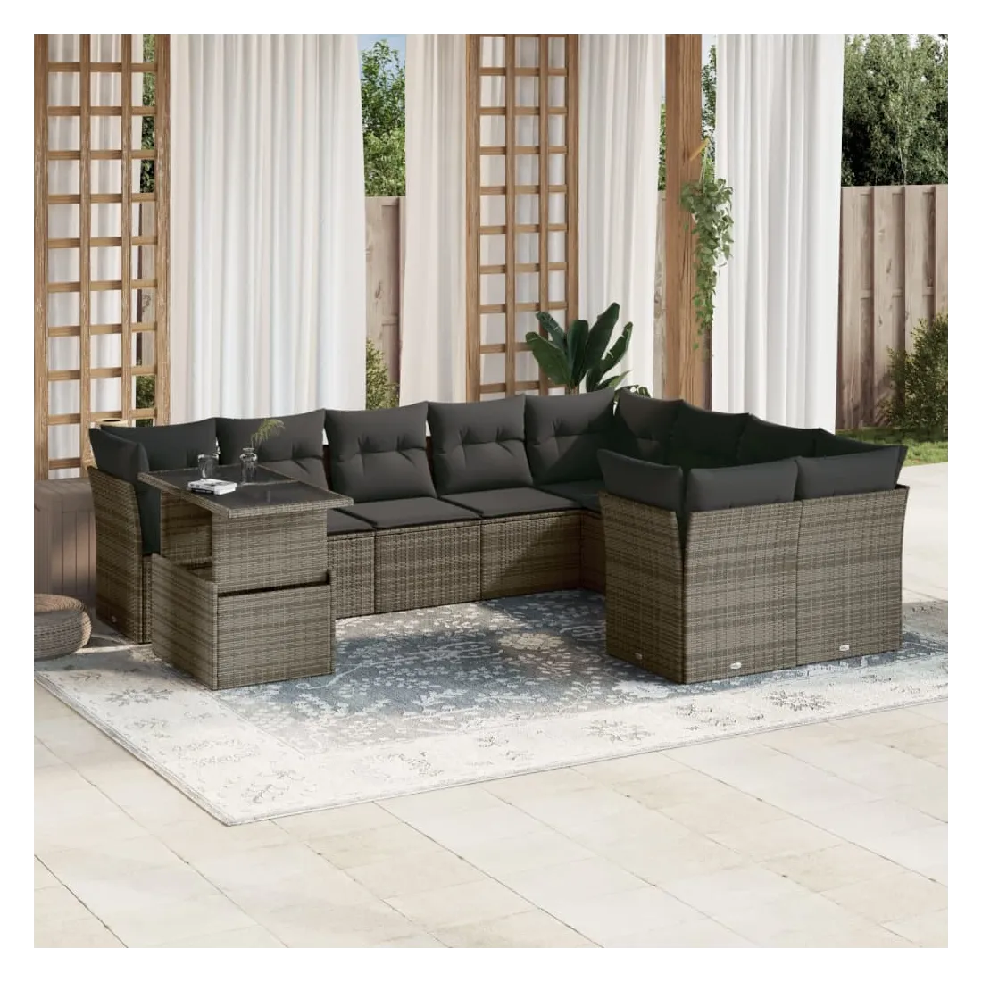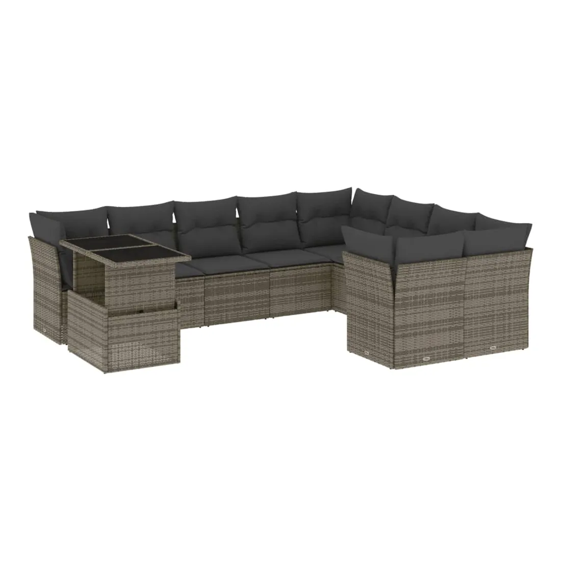 Salon de jardin avec coussins 10 pcs gris résine tressée