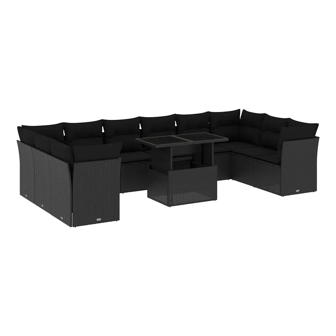 Salon de jardin 11 pcs avec coussins noir résine tressée